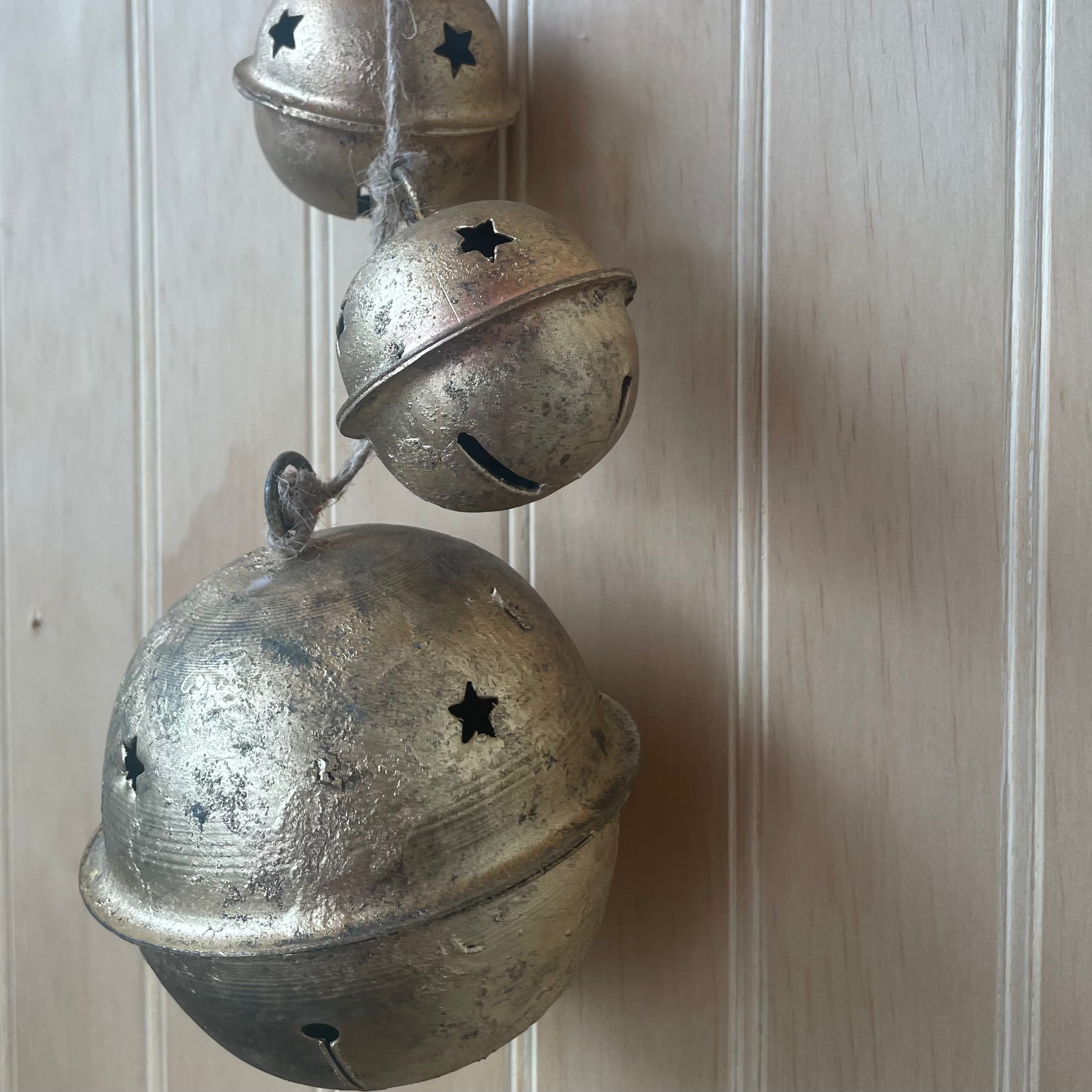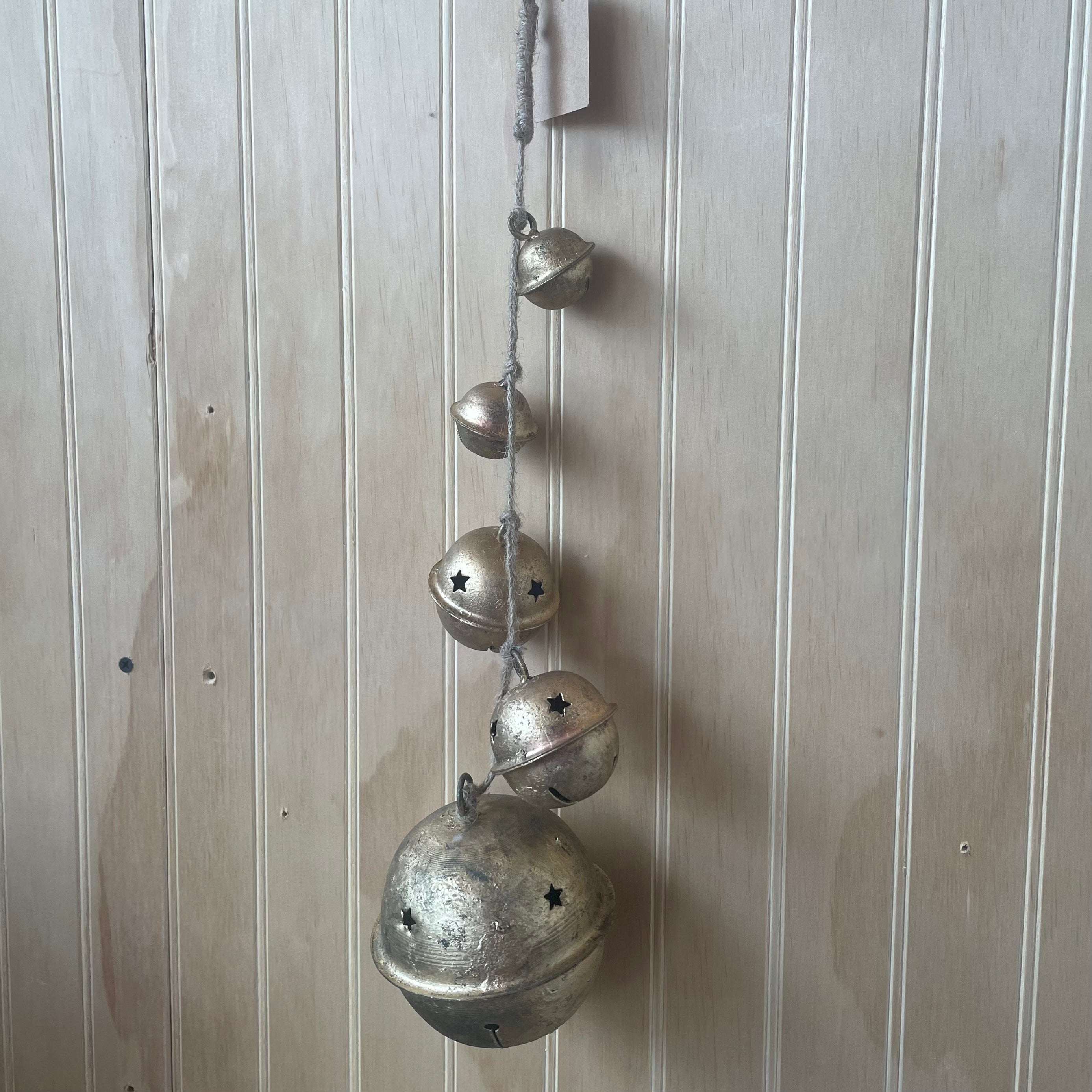 Five Hanging Gold Metal Bells w/Star Cutout 16”