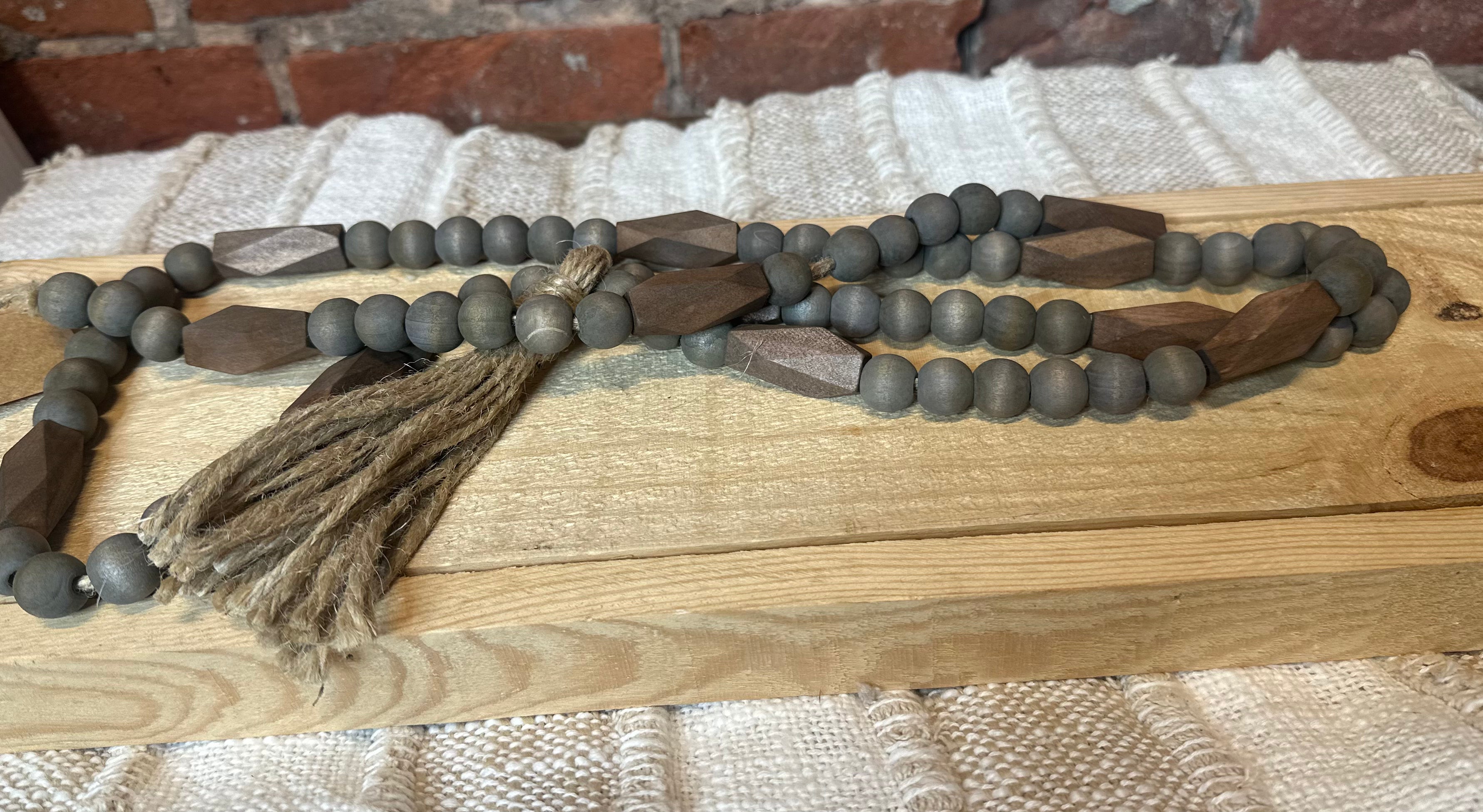 Enhance your home decor with our 72" Geometric Paulownia Wood Bead Garland featuring a stylish, natural jute tassel. This versatile garland adds a touch of texture and warmth to any space.