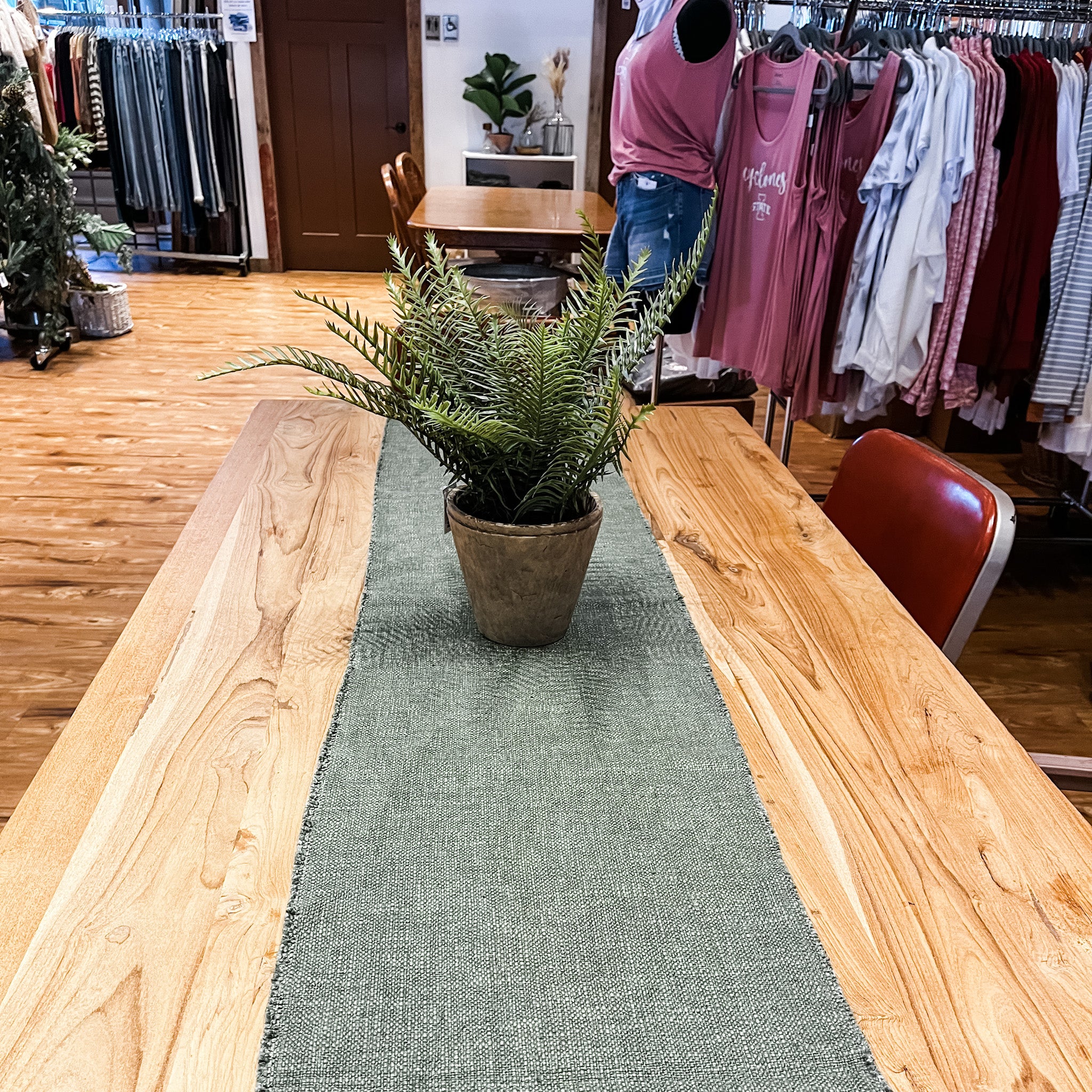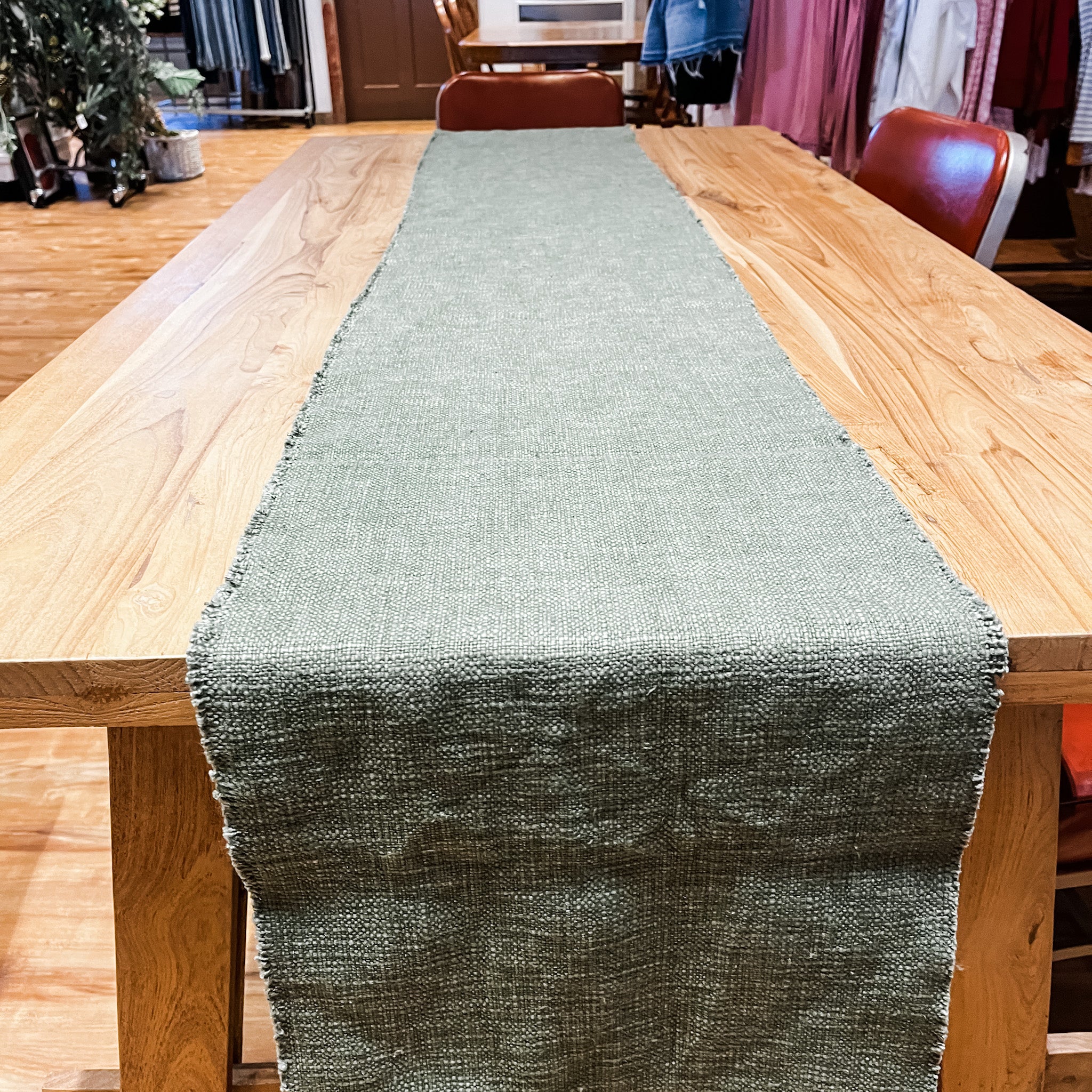 Green Linen Blend Table Runner w/ Fray Edges 108x14