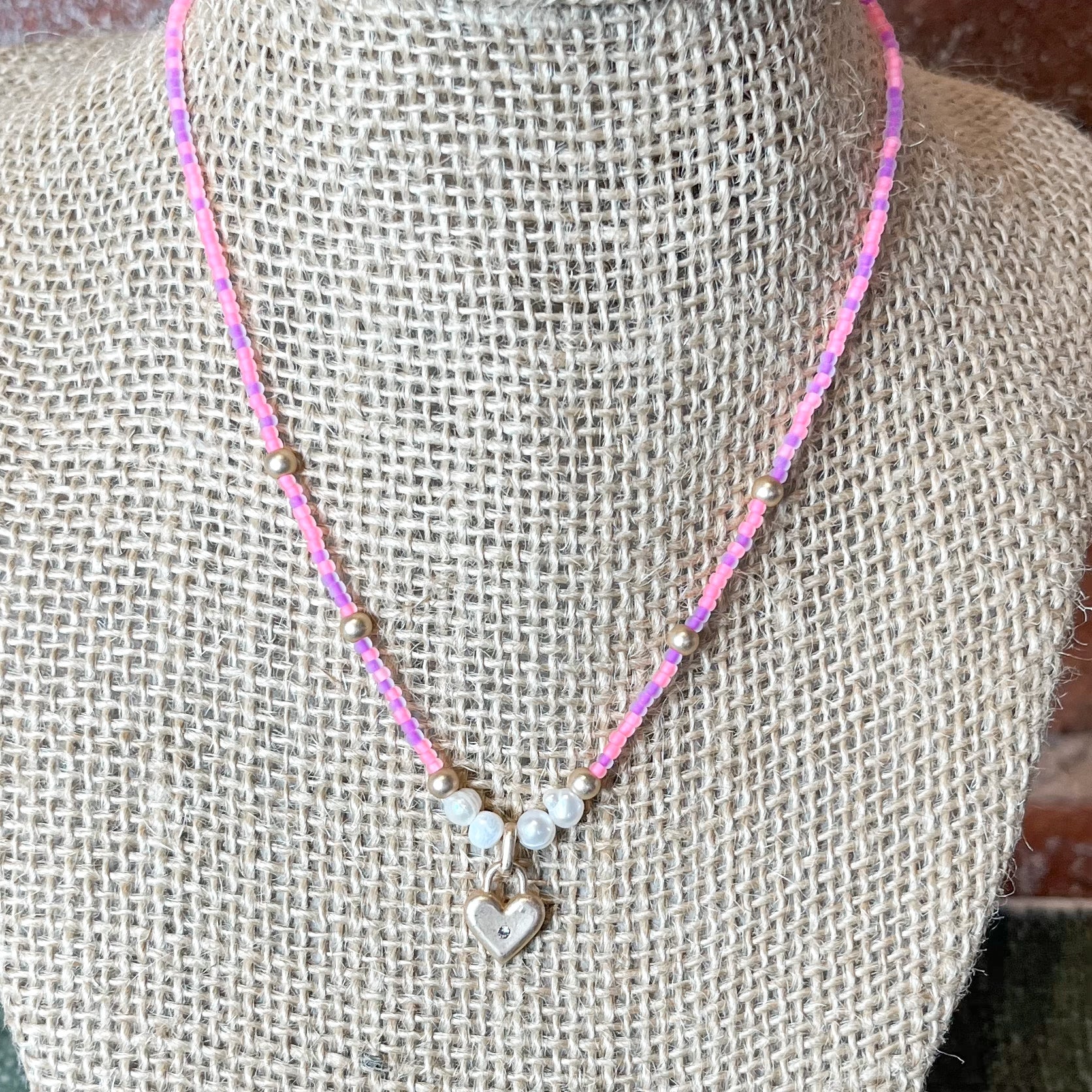 Kids Neon Beaded & Pearl w/ Pendant Necklace