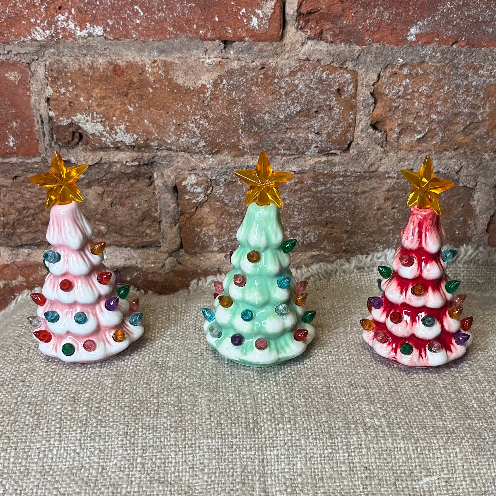 Brighten your space with this playful LED Retro Mini Tree, standing 4.75” tall and topped with a sparkling star. Choose from charming pink, vibrant red, or festive green to add a cheerful glow anywhere you like. Perfect for a quirky holiday vibe or year-round fun, this mini tree brings a pop of retro charm and lighthearted color to your décor.