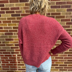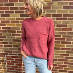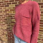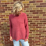 Wrap yourself in cozy comfort with this rust-colored long sleeve pullover sweater. Soft to the touch and designed for all-day wear, it features a handy chest pocket perfect for stashing small essentials or showing off your style. A playful addition to your wardrobe that keeps you comfy and cute!