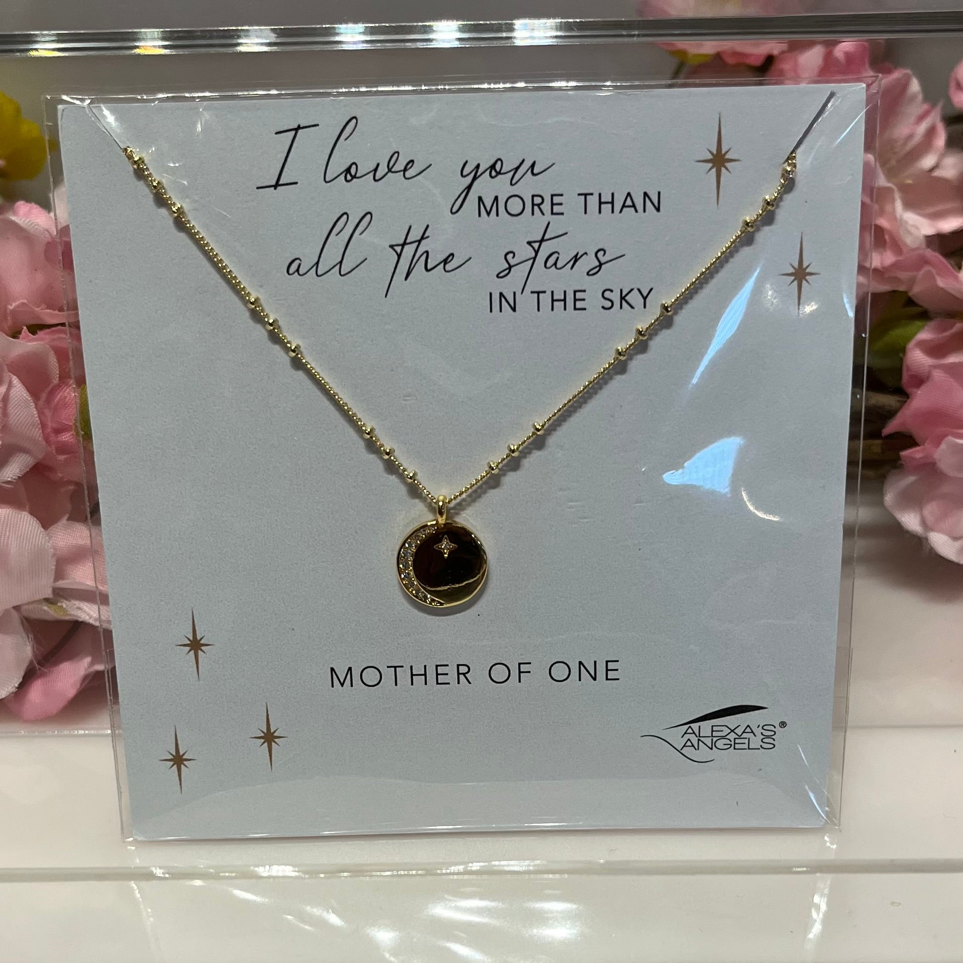 This elegant necklace features a gold chain with a delicate moon pendant adorned with stars, each representing a precious member of your family. Made with high-quality materials, it is a beautiful way to honor your loved ones. The perfect accessory for any outfit, this necklace is a symbol of love and unity.