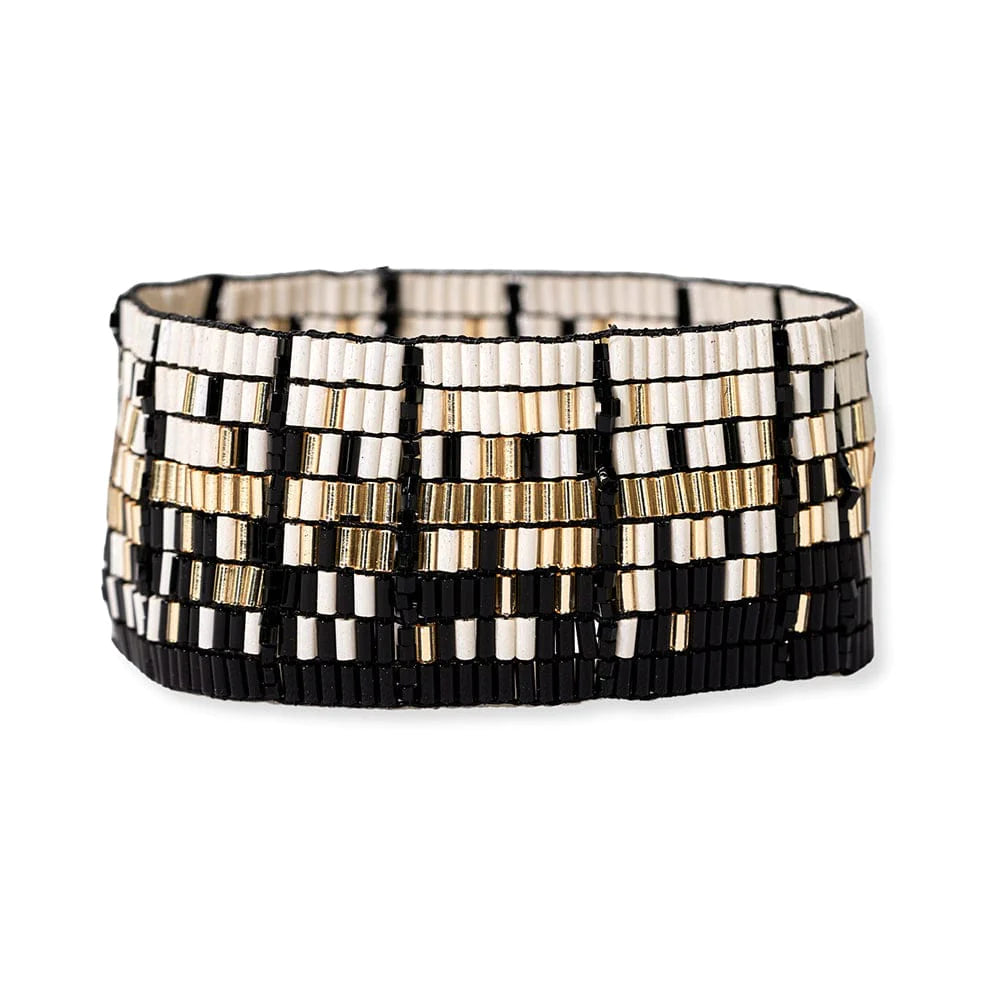 Natalia Mixed Luxe Bead Gradient Stretch Bracelet Black/White