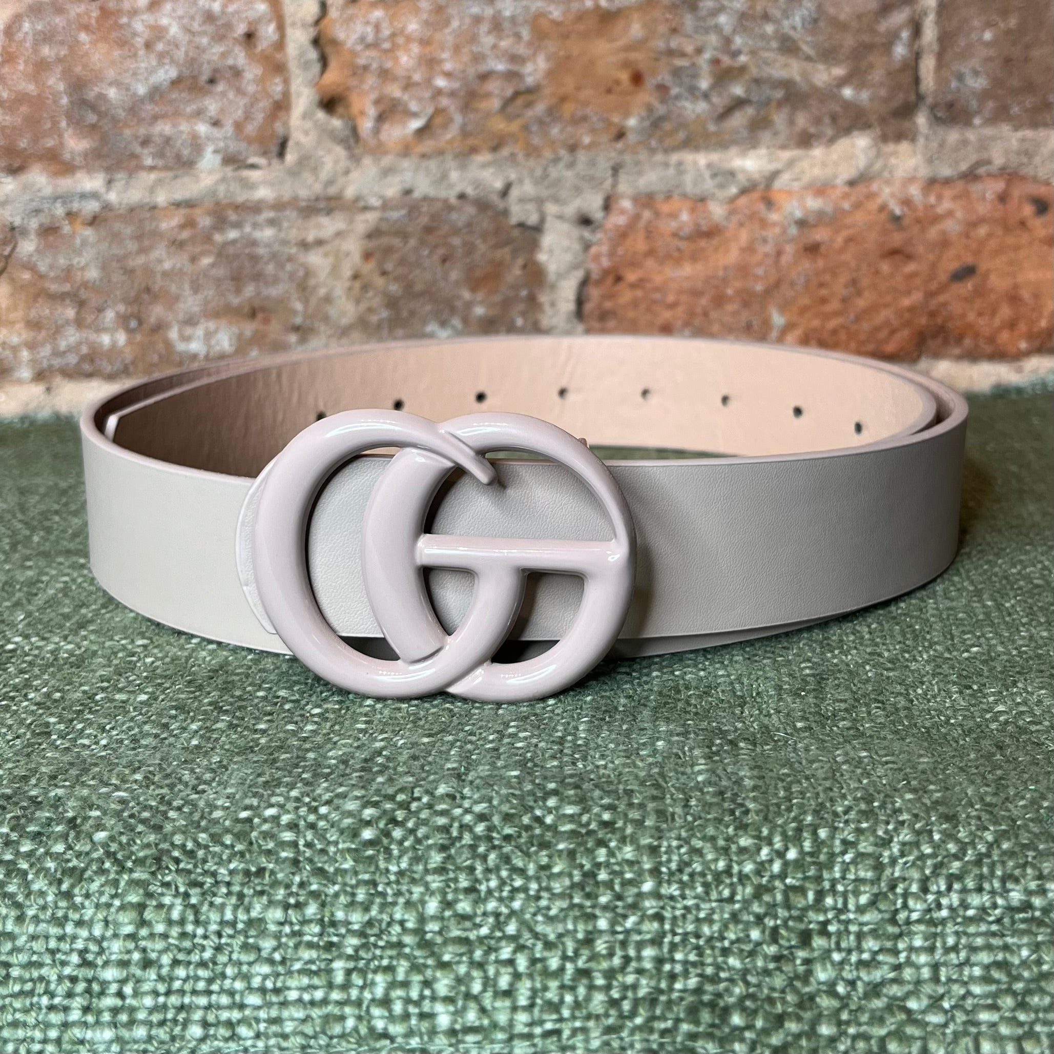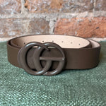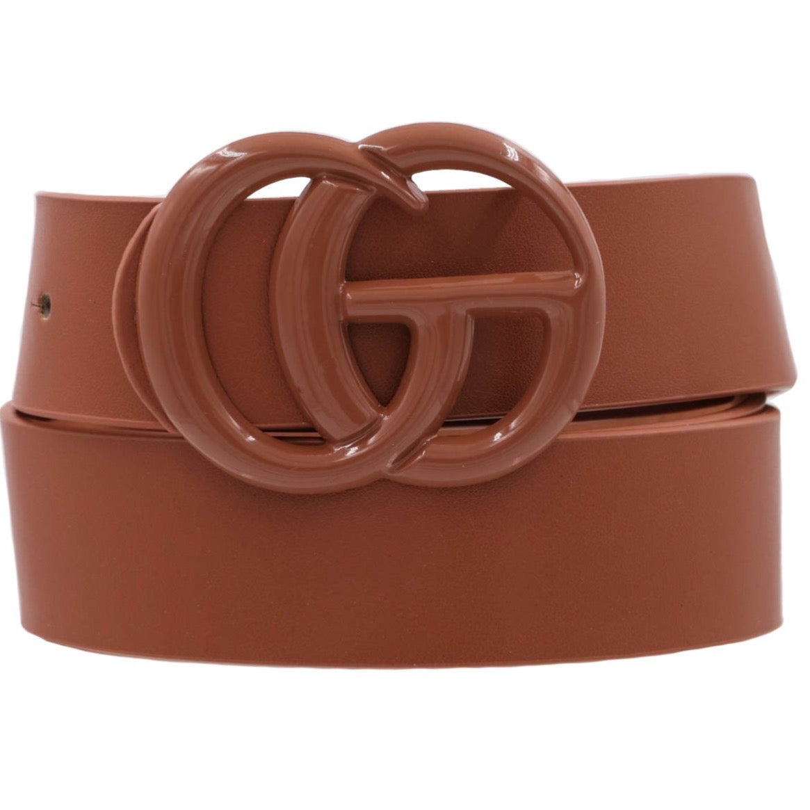 Metal painted double ring buckle faux leather beltlength: 40" Width: 1 1/4"