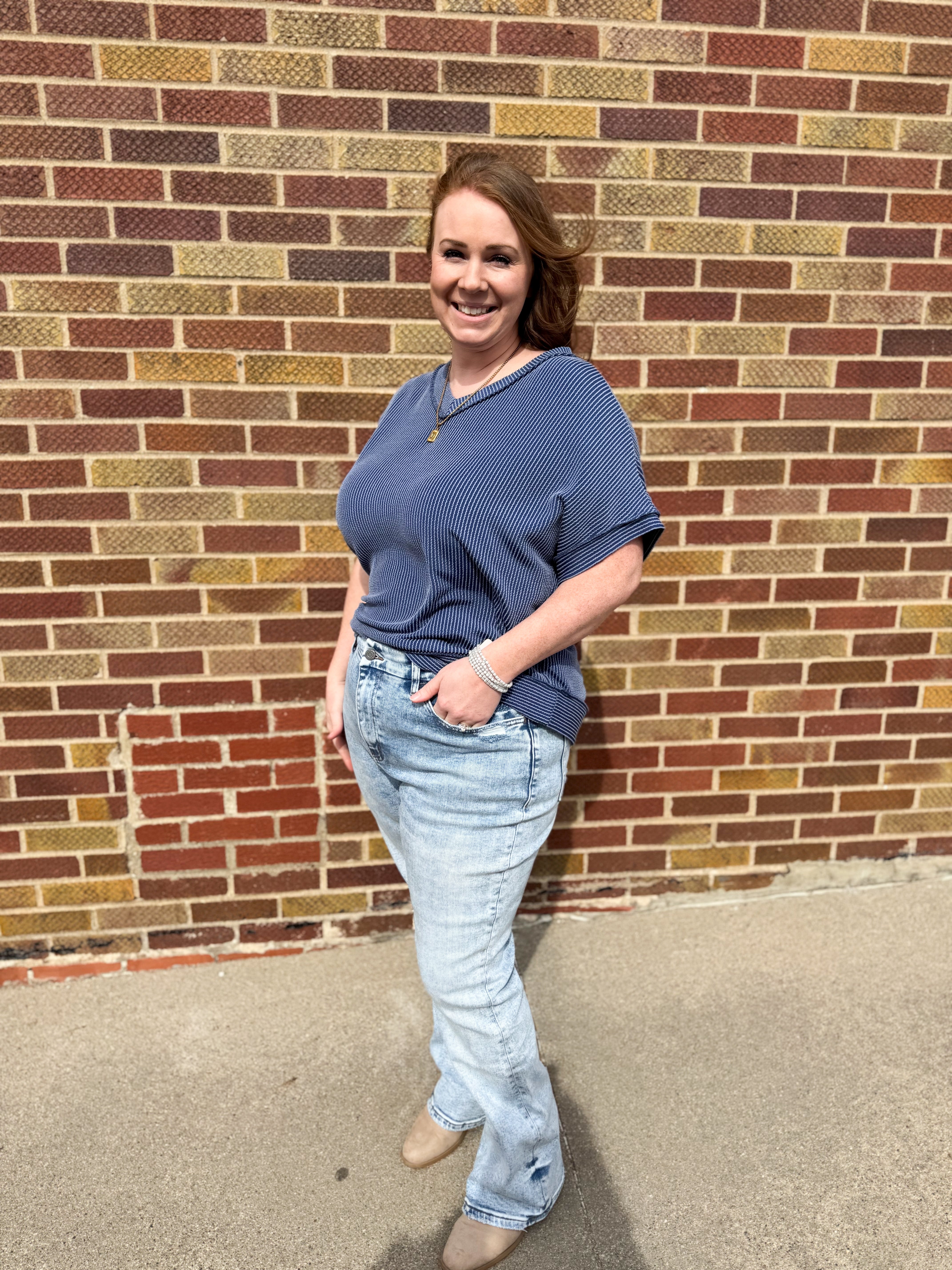 These Plus Blue Ribbed Tees offer a stylish and comfortable option for any wardrobe. The ribbed texture adds visual interest while the blue color provides a versatile and on-trend look. These tees are perfect for everyday wear or lounging around the house.
