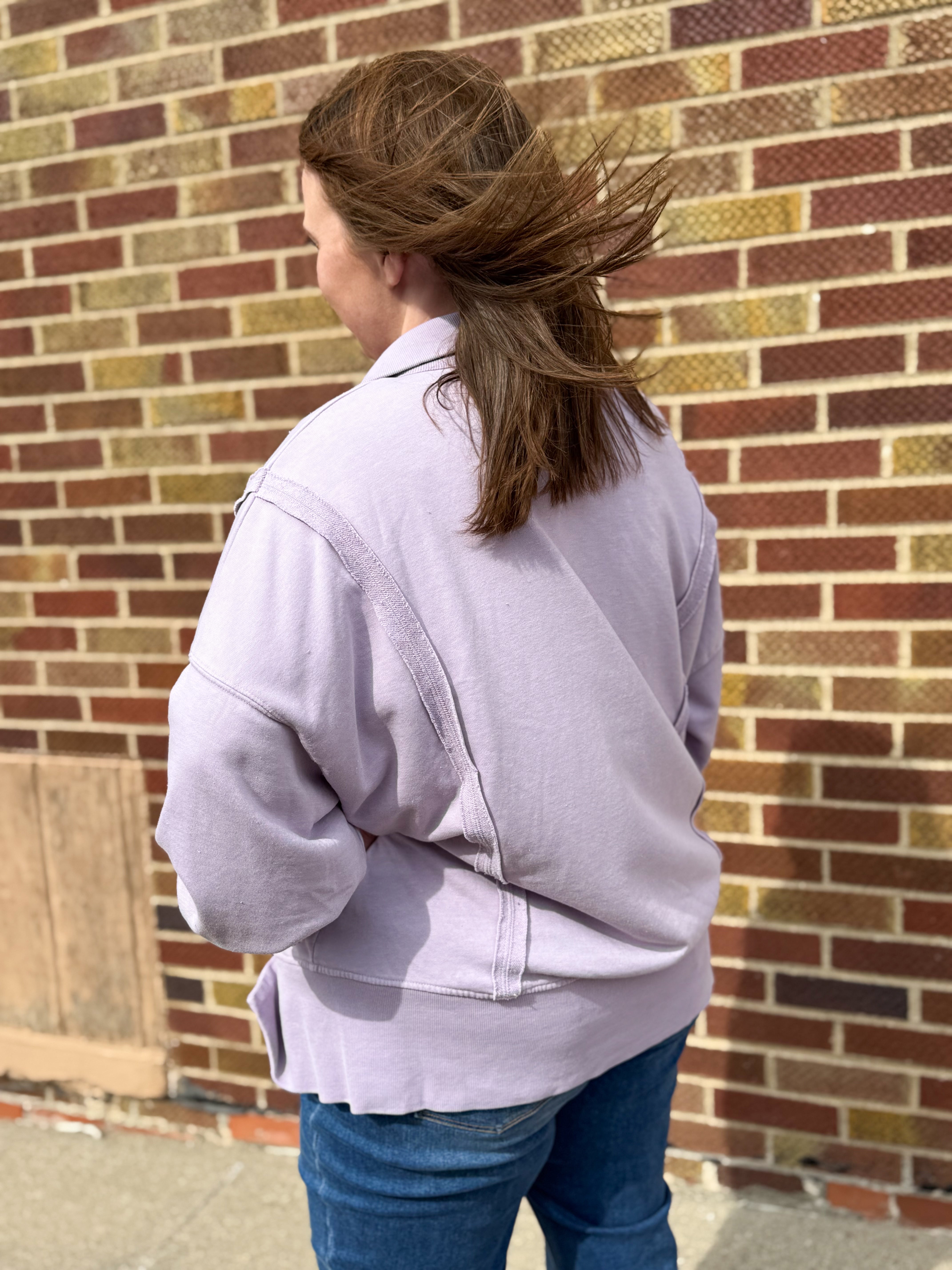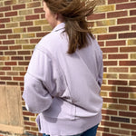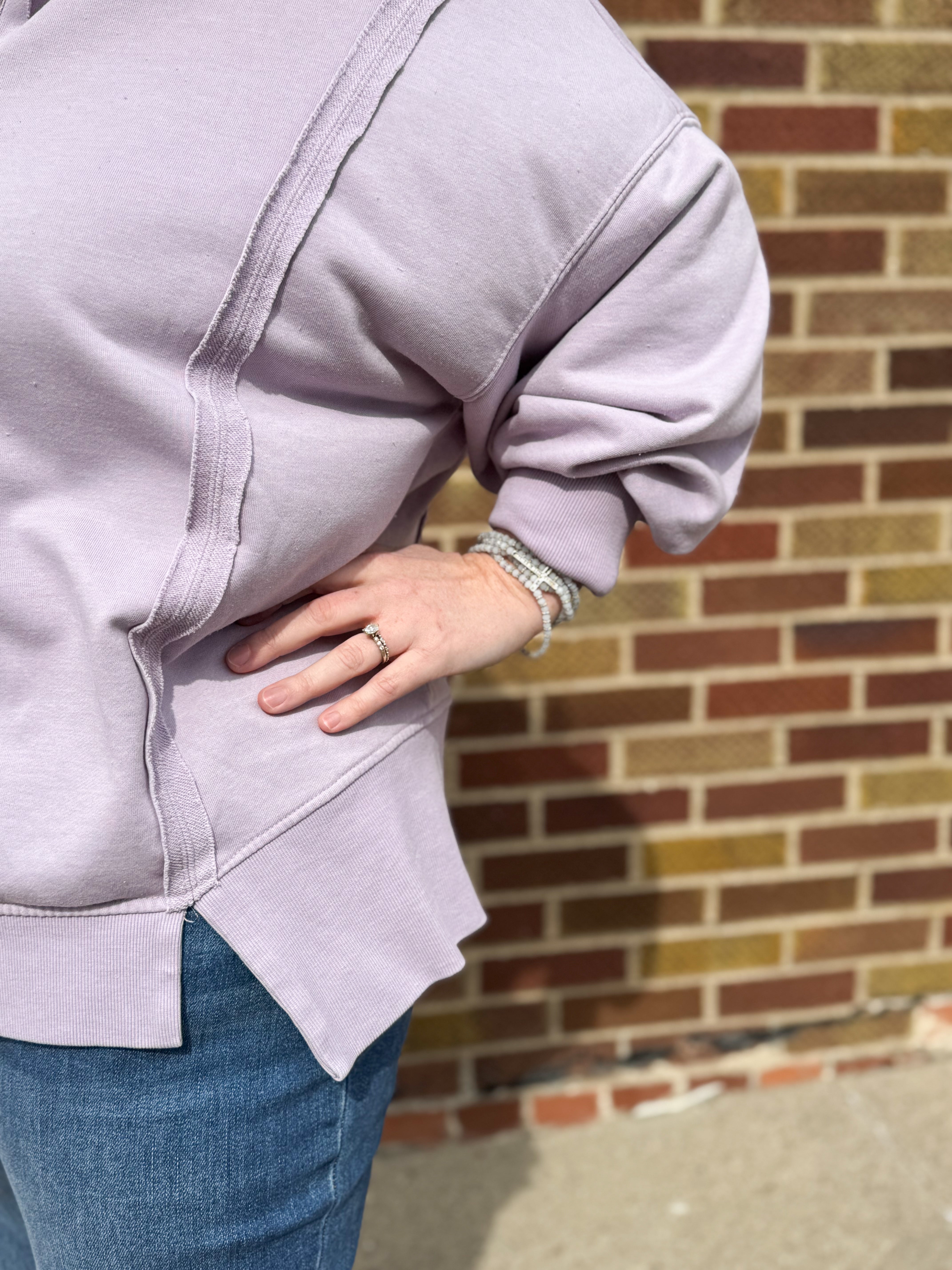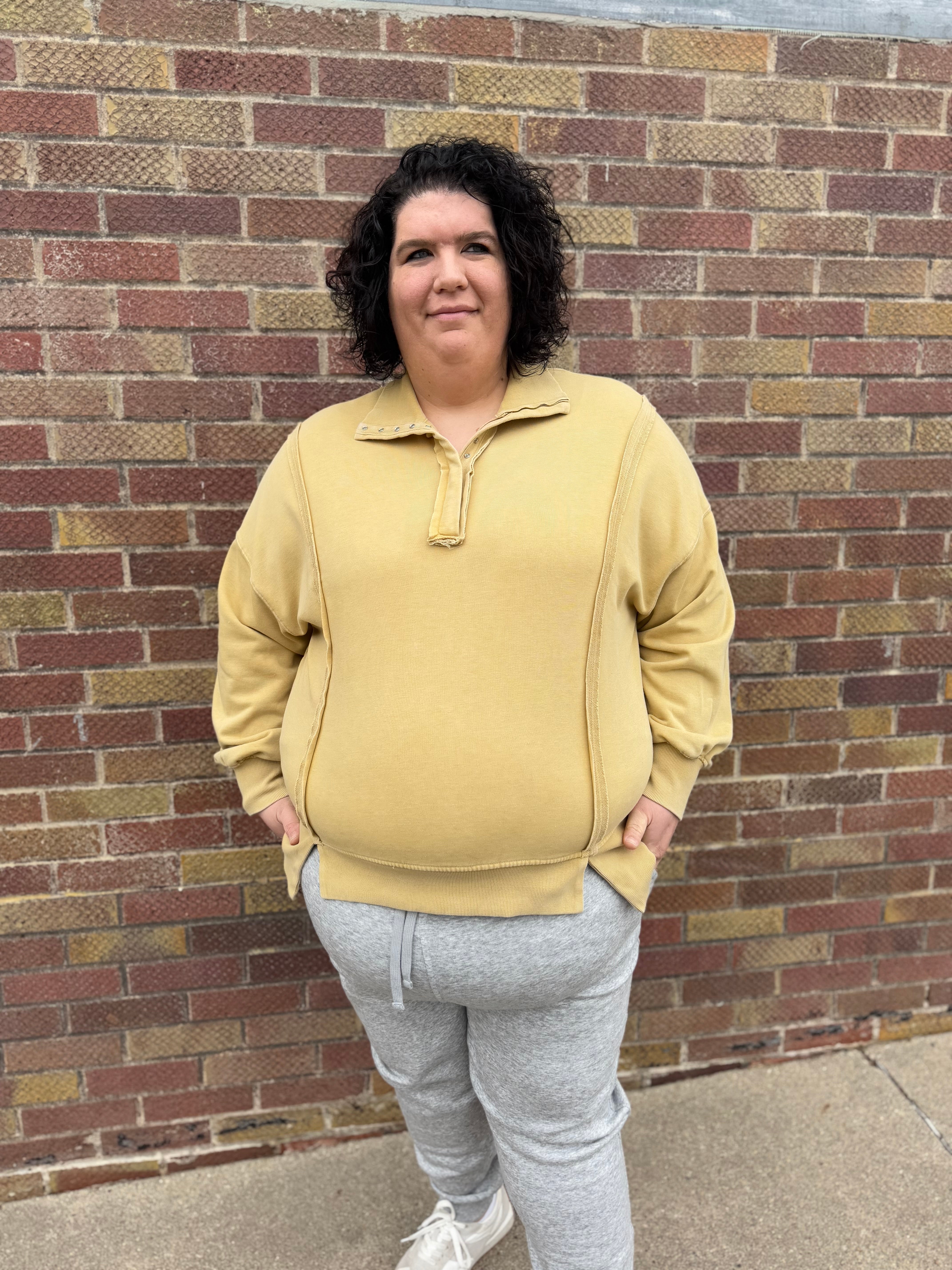 Crafted from mineral-washed French terry fabric, this oversized pullover features a relaxed fit, collared neckline with snap button closure, and exposed seaming details. Perfect for lounging, casual outings or layering.