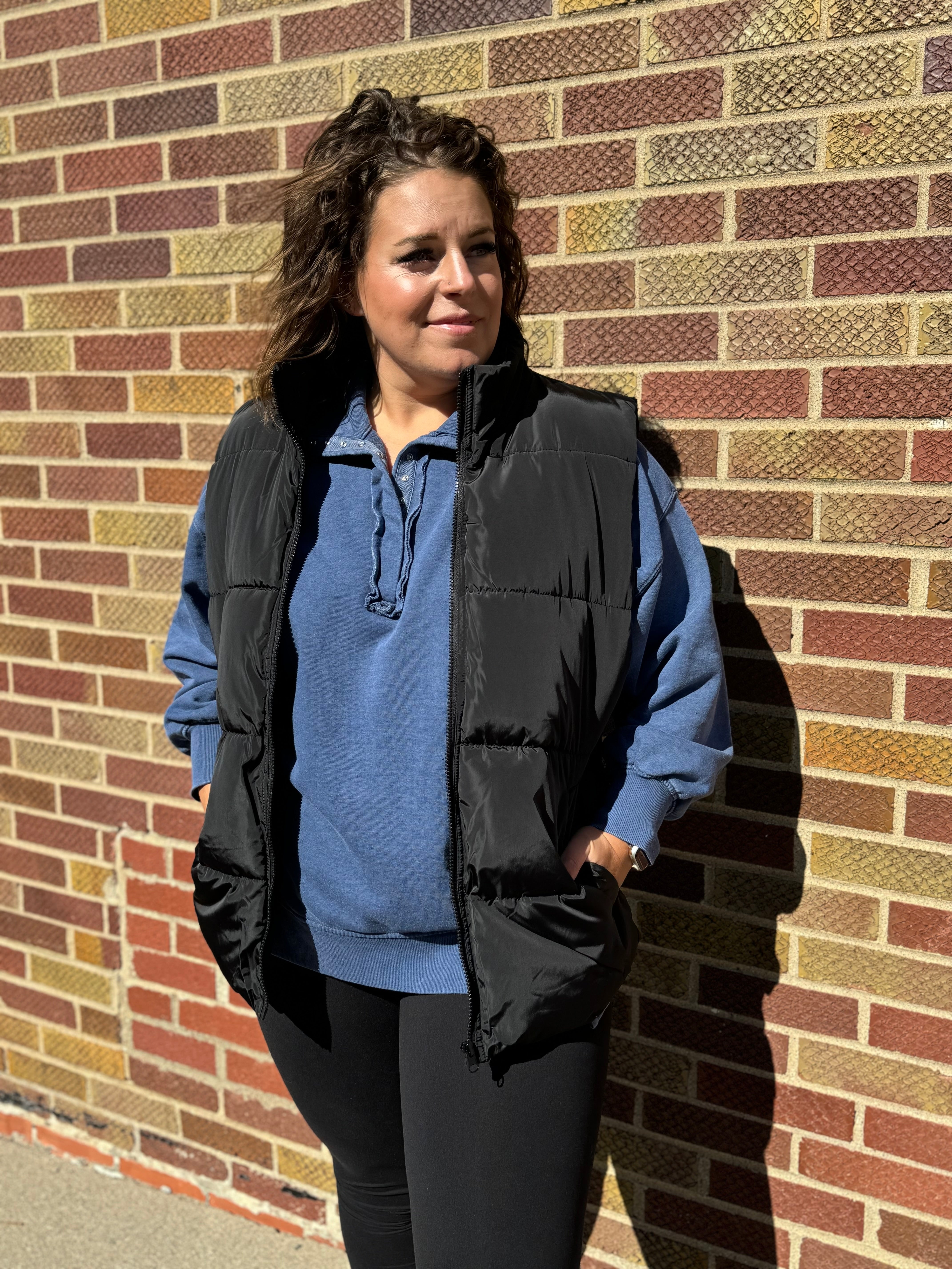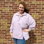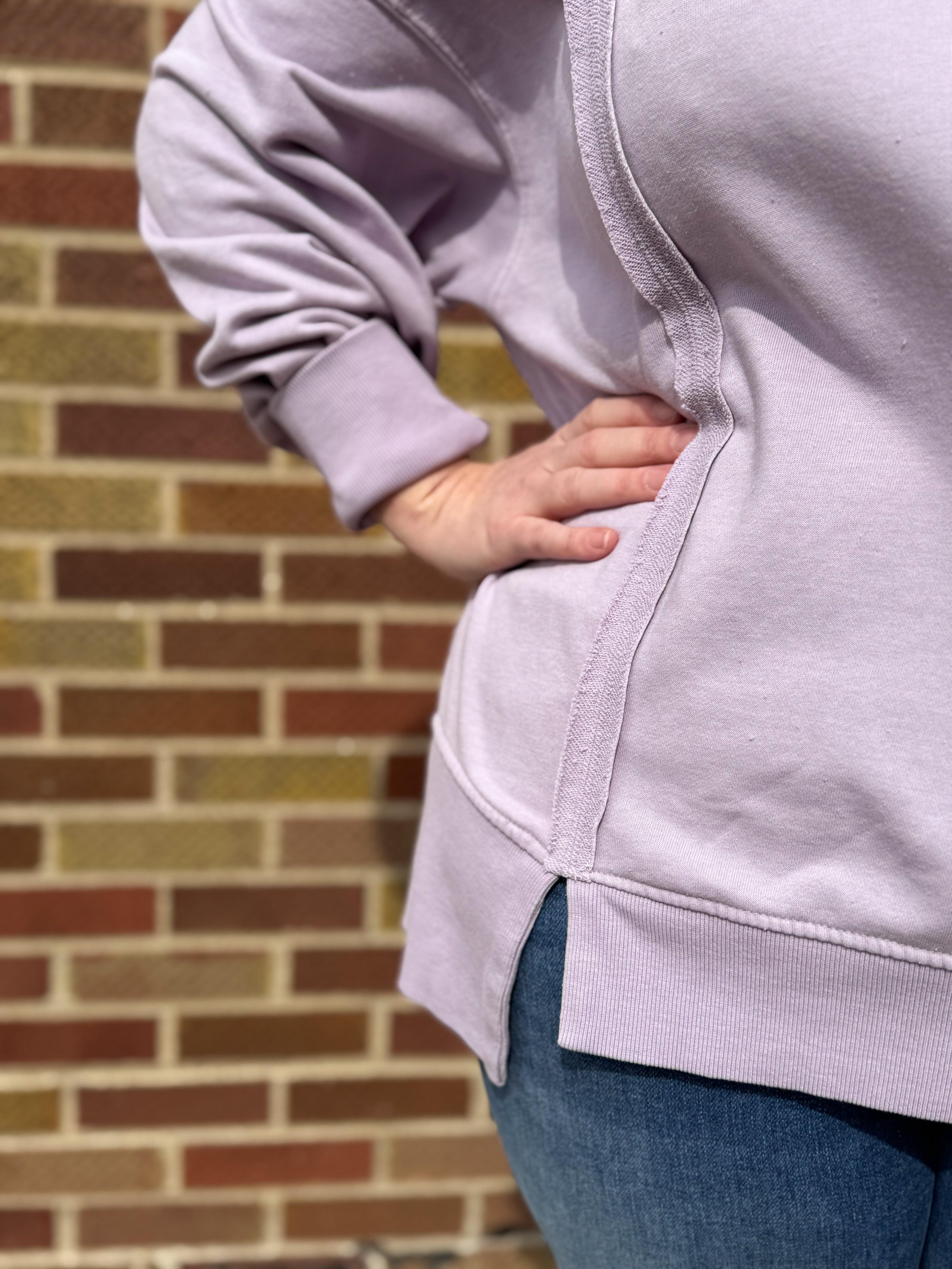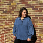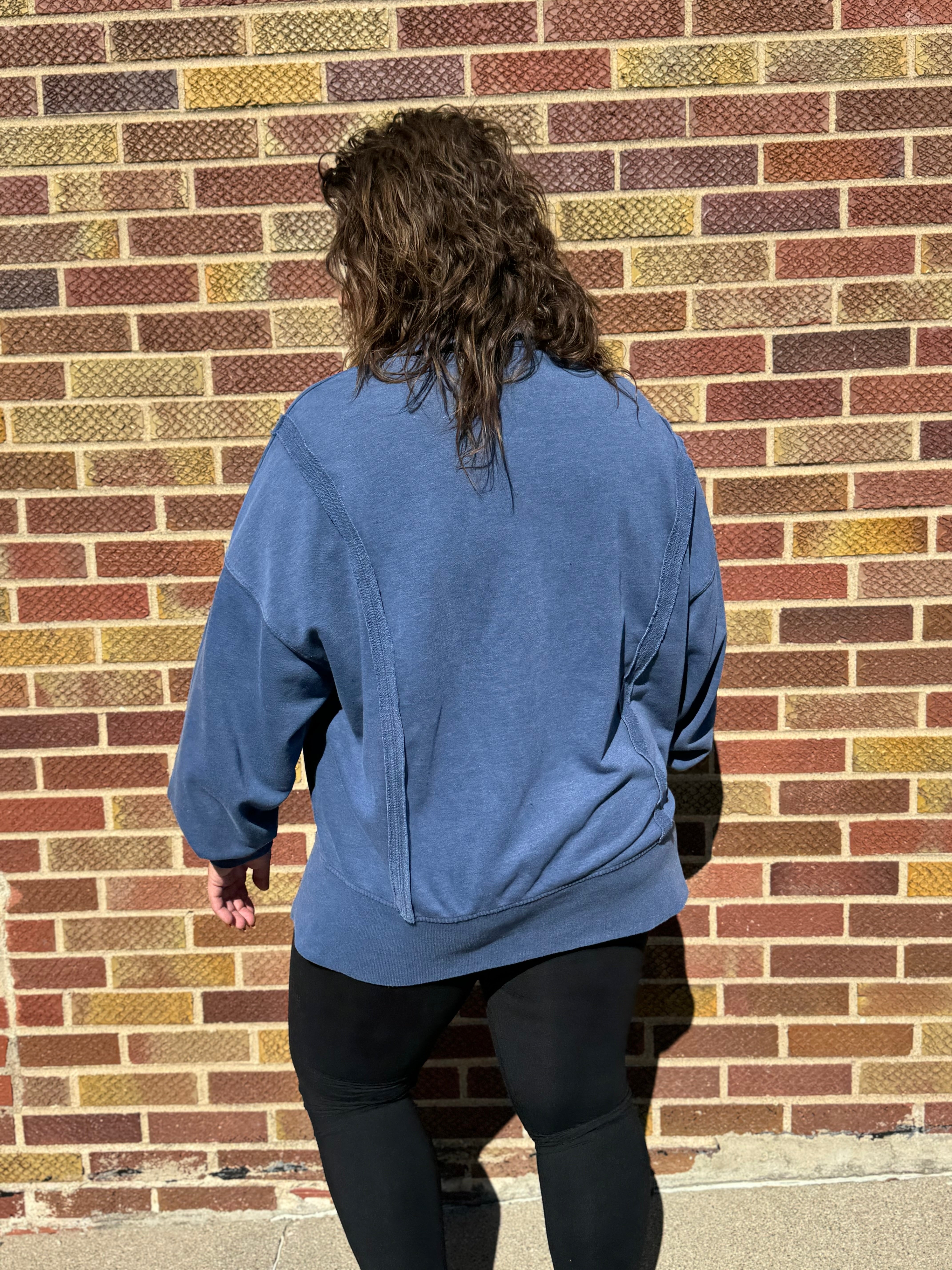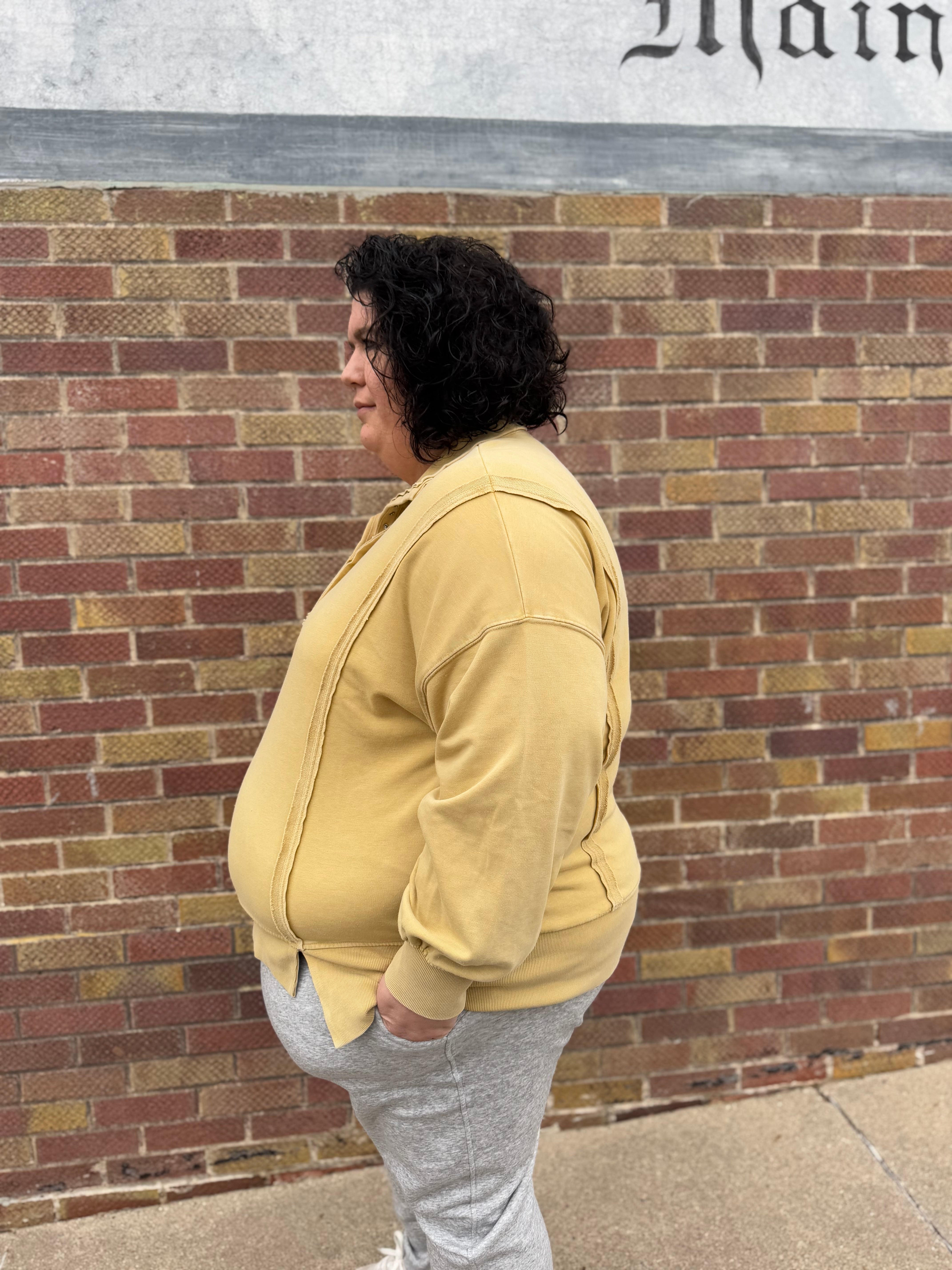Crafted from mineral-washed French terry fabric, this oversized pullover features a relaxed fit, collared neckline with snap button closure, and exposed seaming details. Perfect for lounging, casual outings or layering.
