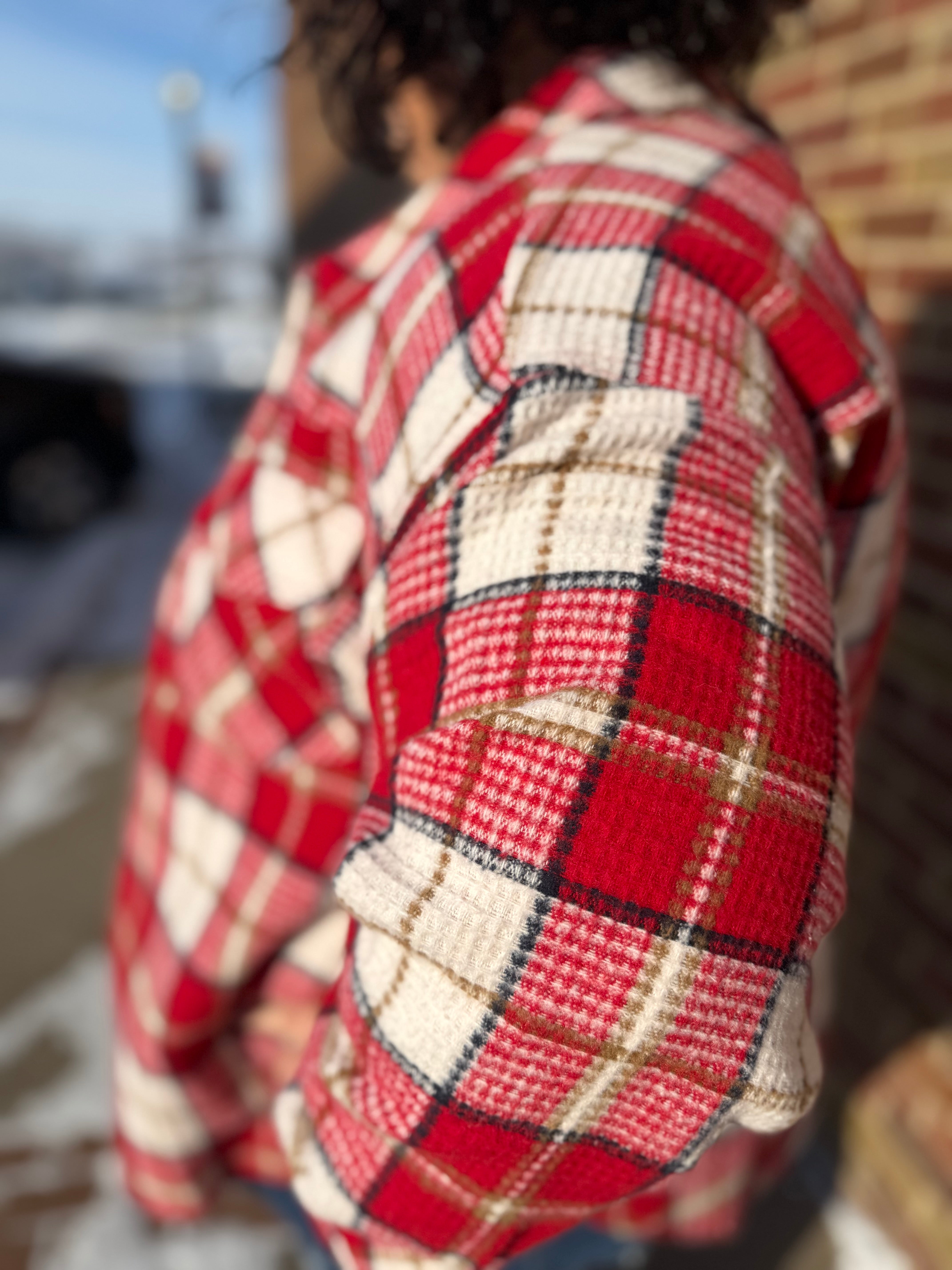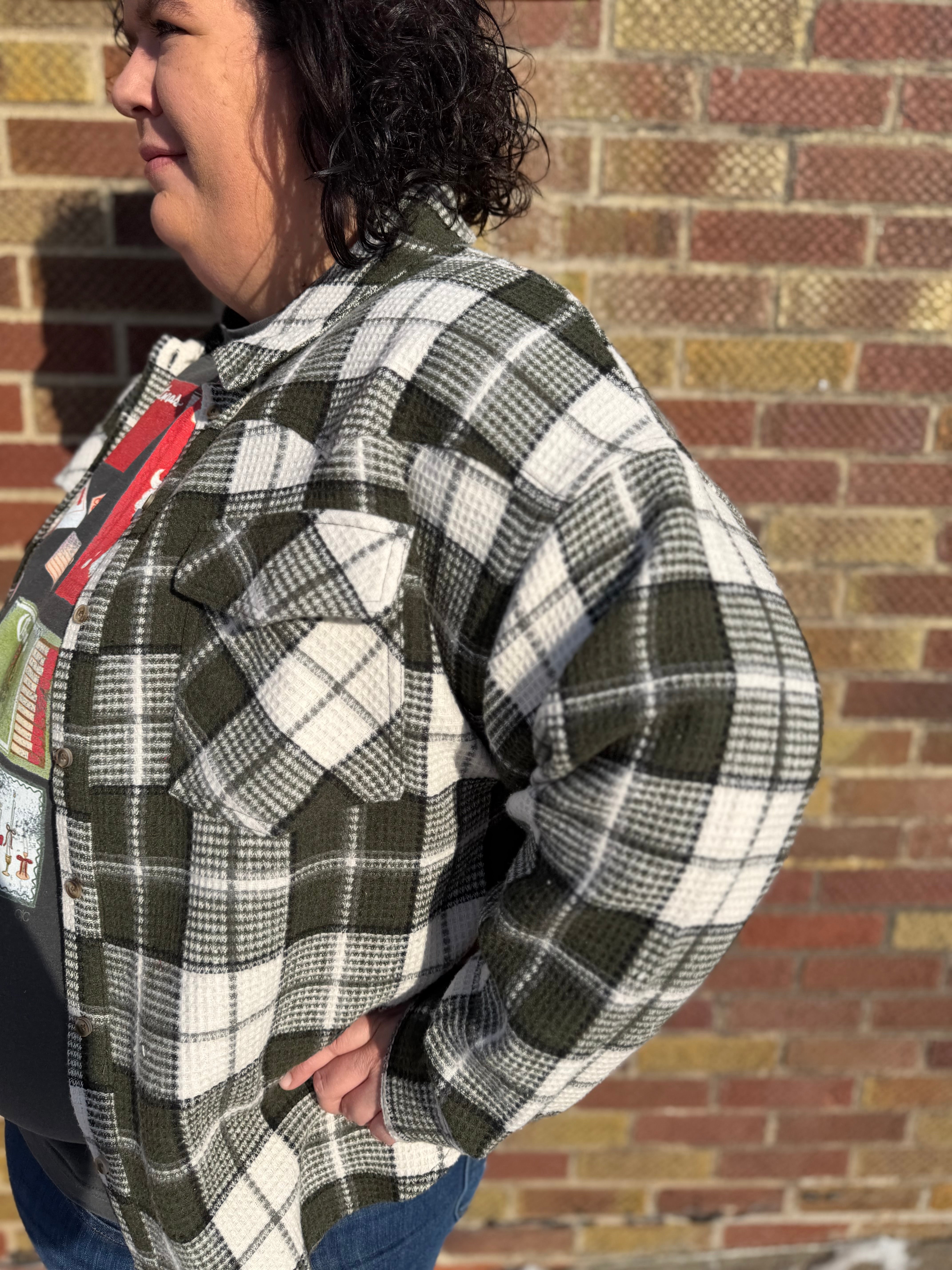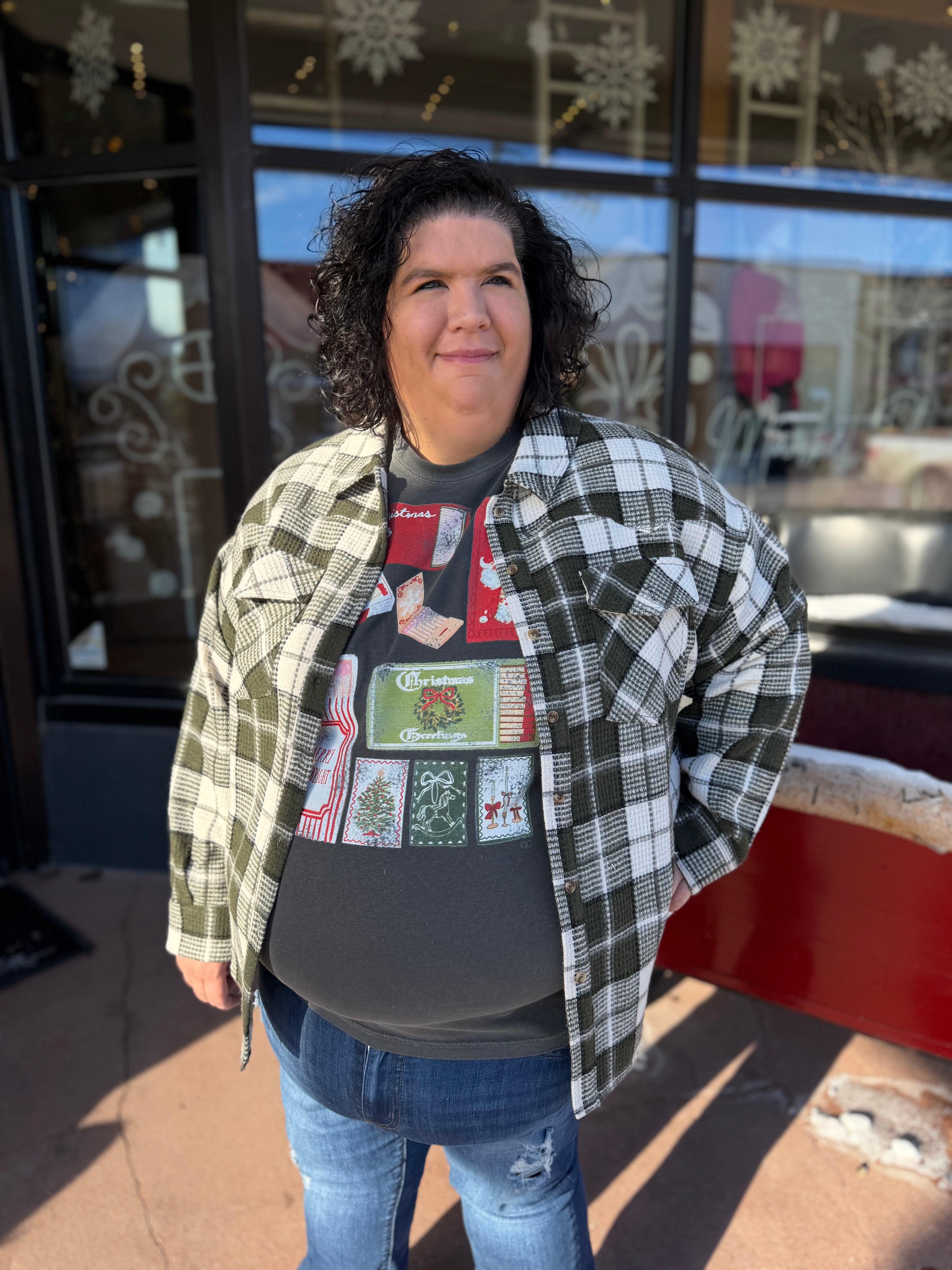 Plus Oversize Checkered Casual Shacket