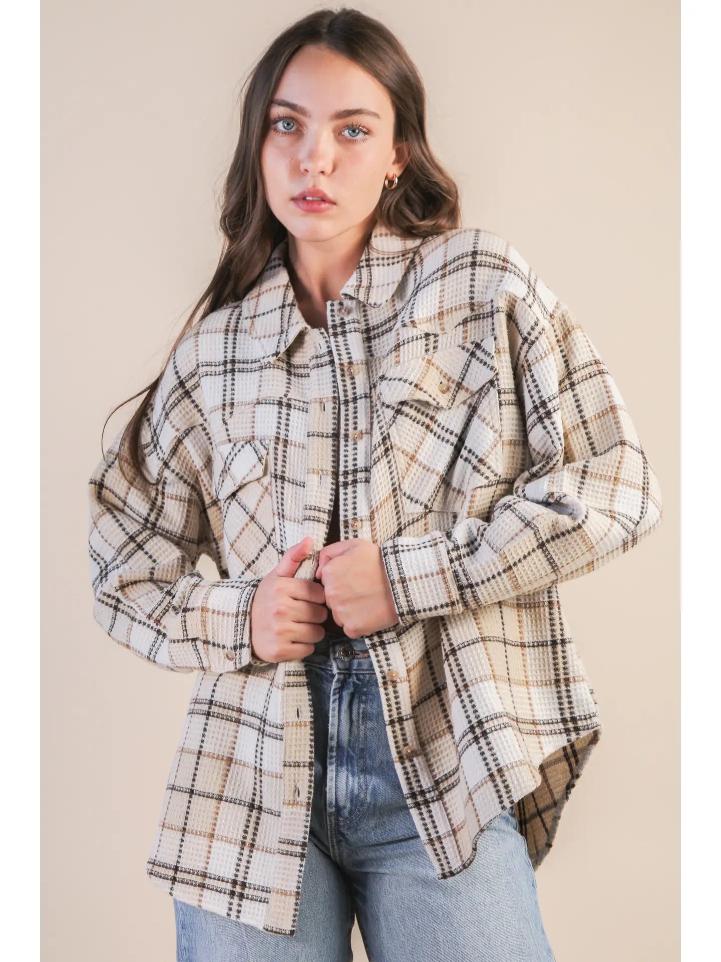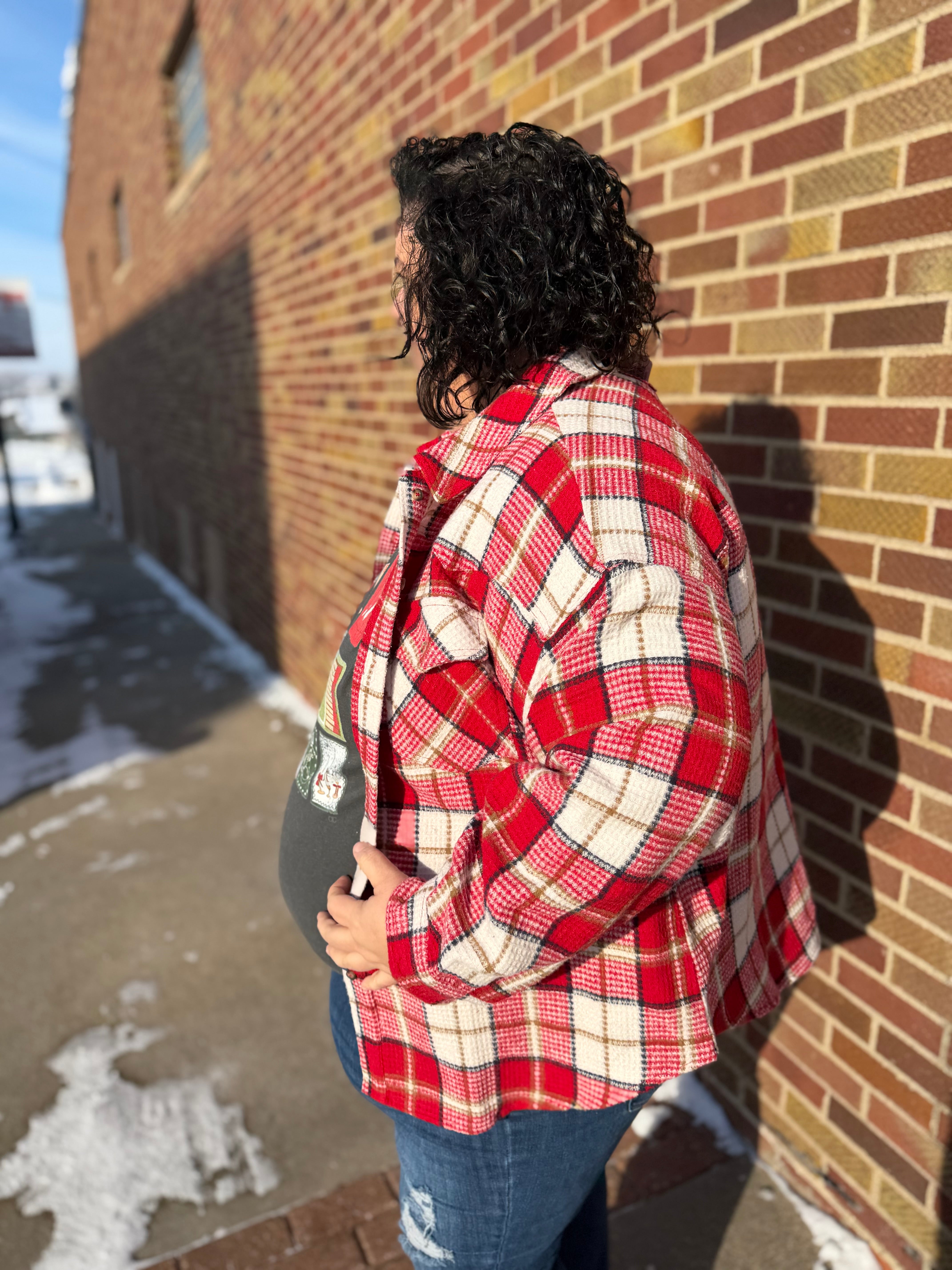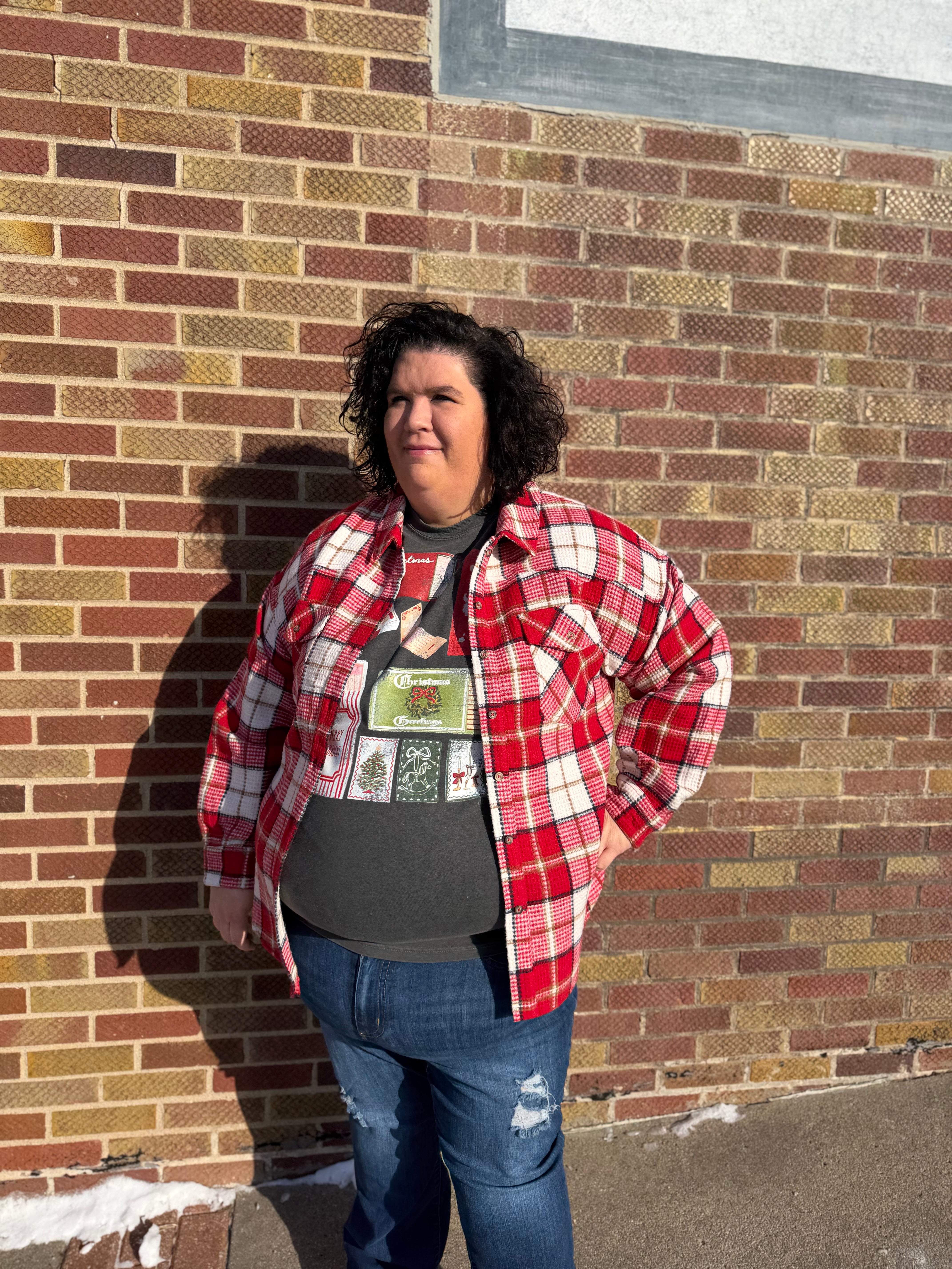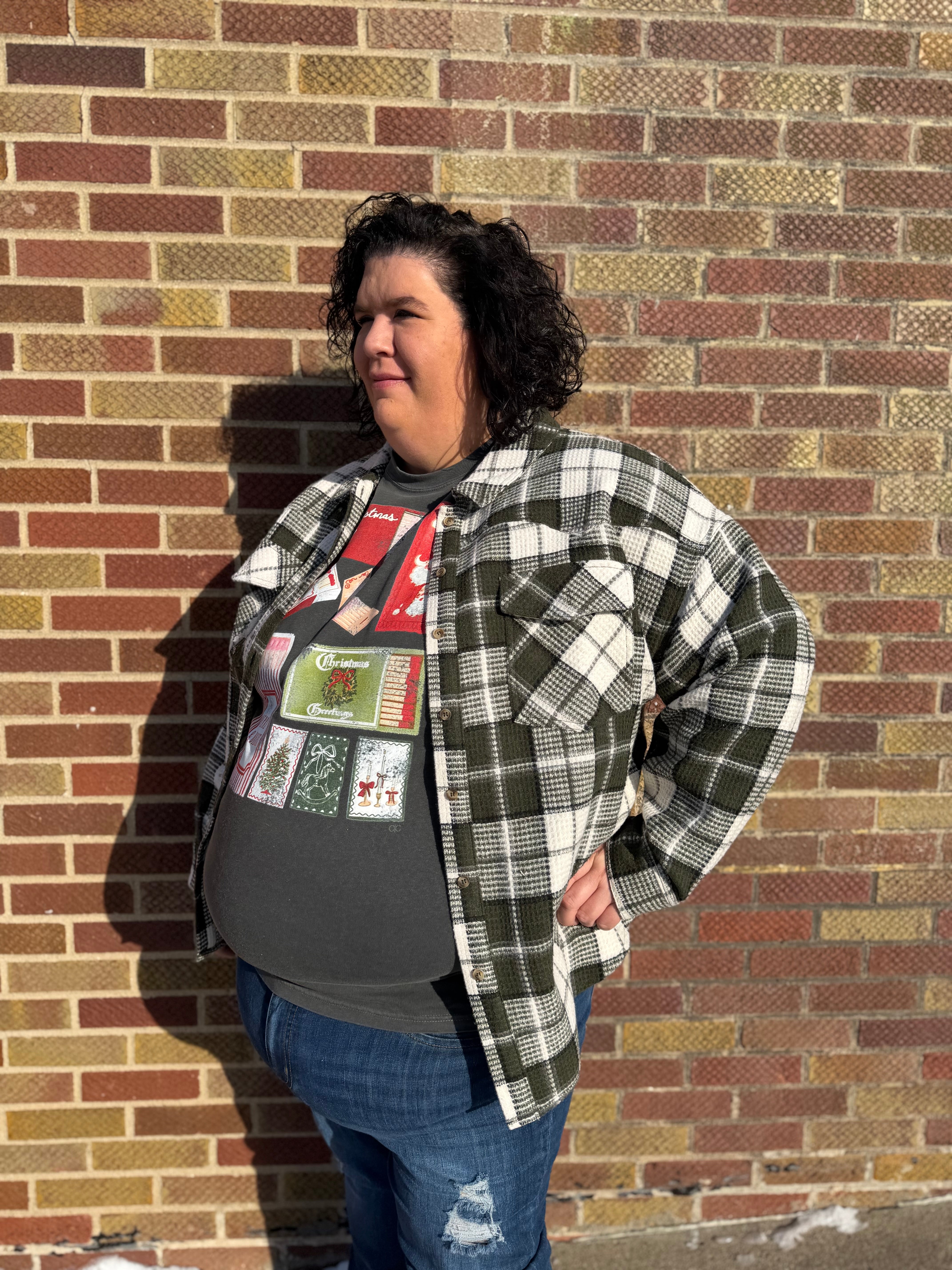 Plus Oversize Checkered Casual Shacket