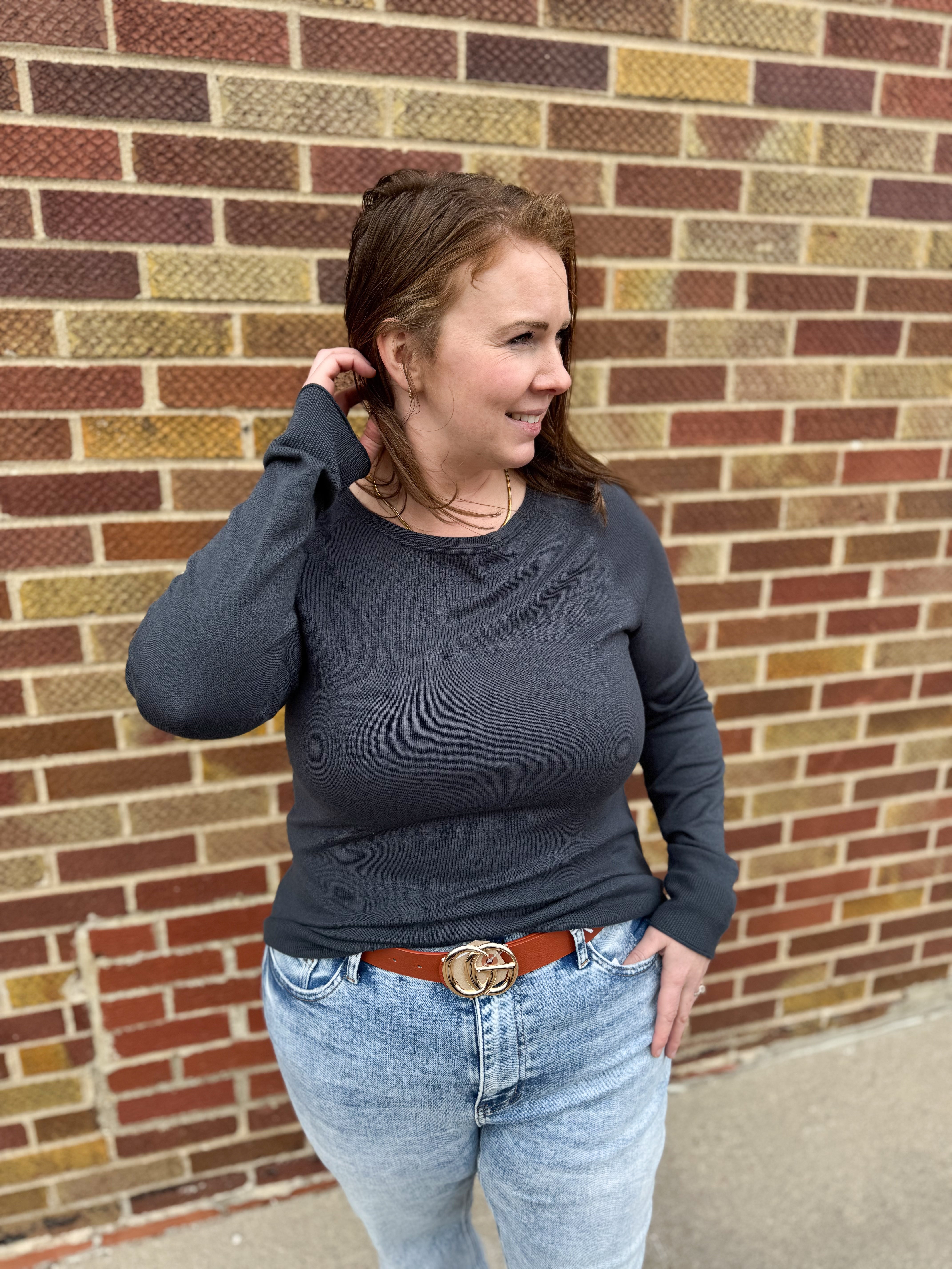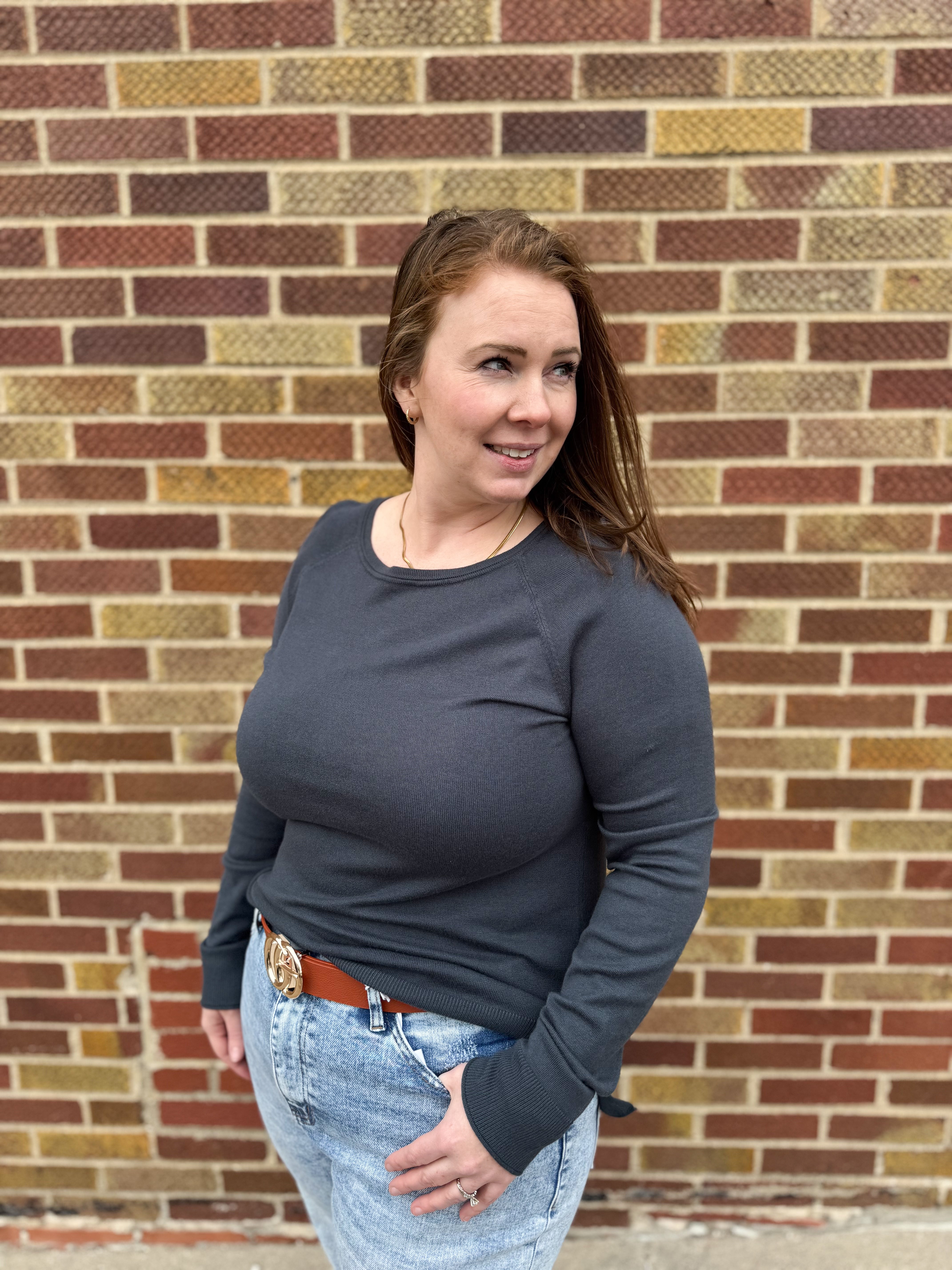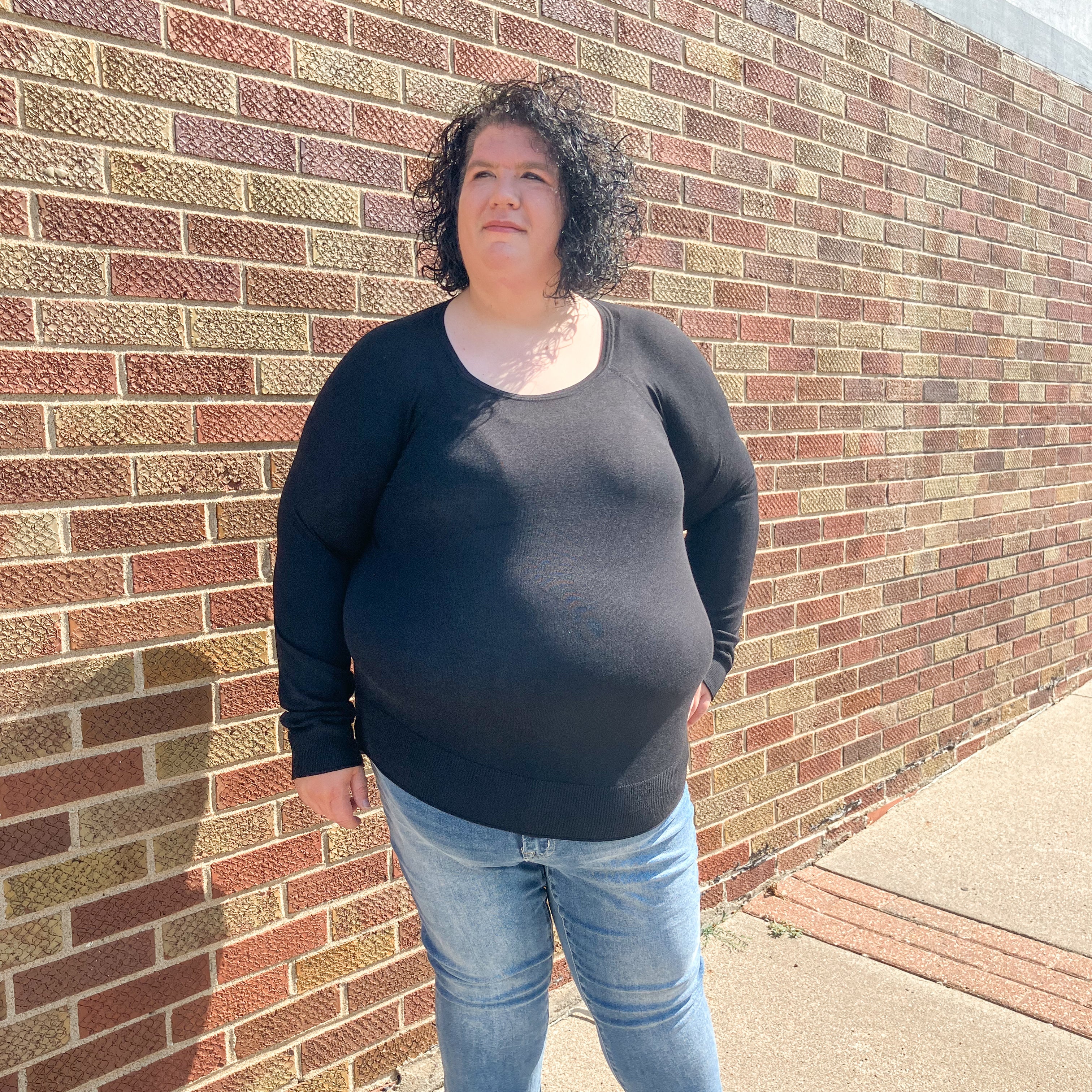 Upgrade your wardrobe with our Plus Round Neck Raglan Sweater. With long sleeves and stylish ribbed ends, this sweater is perfect for those chilly days. The side slits add a touch of uniqueness to this versatile piece. Stay cozy and chic with our high-quality sweater.