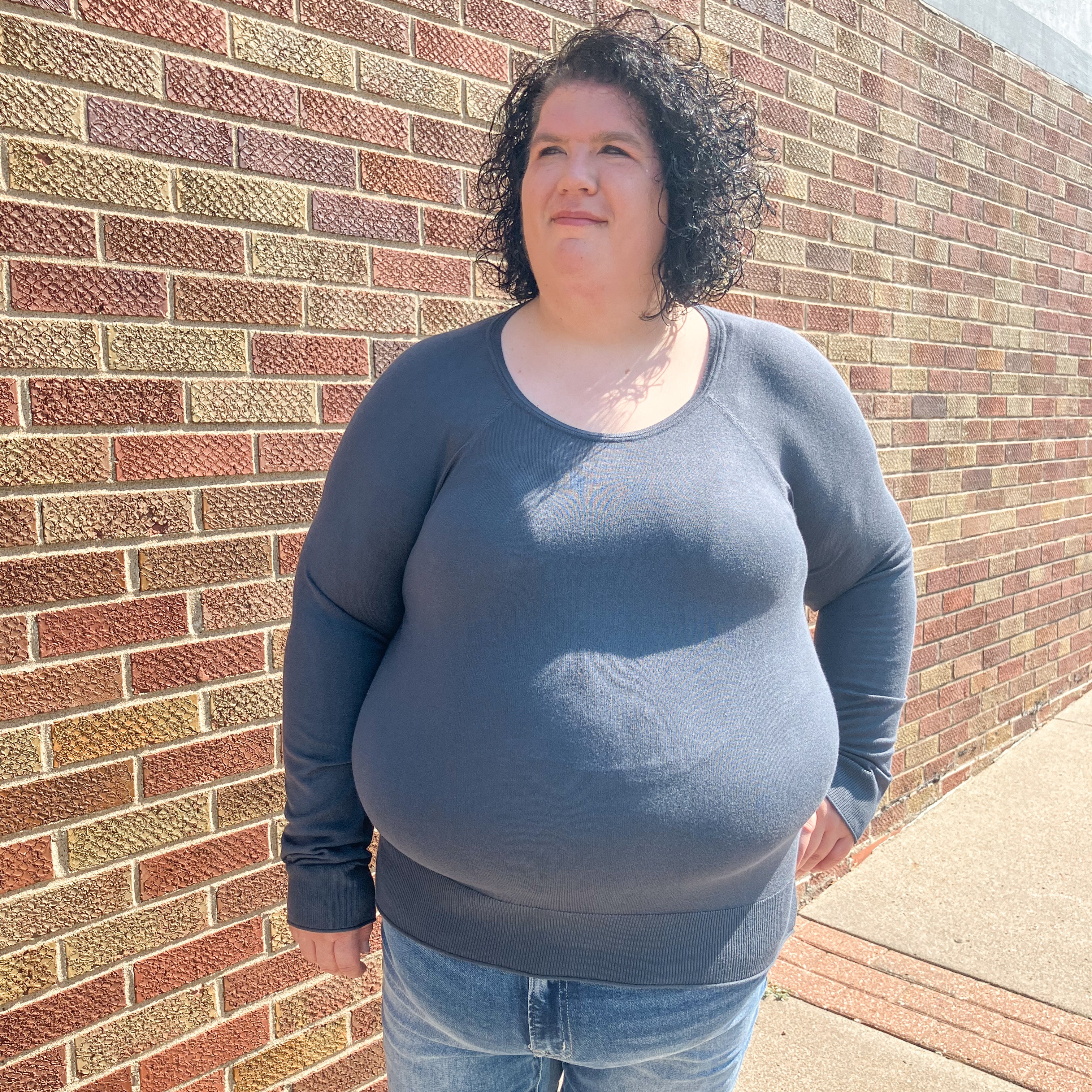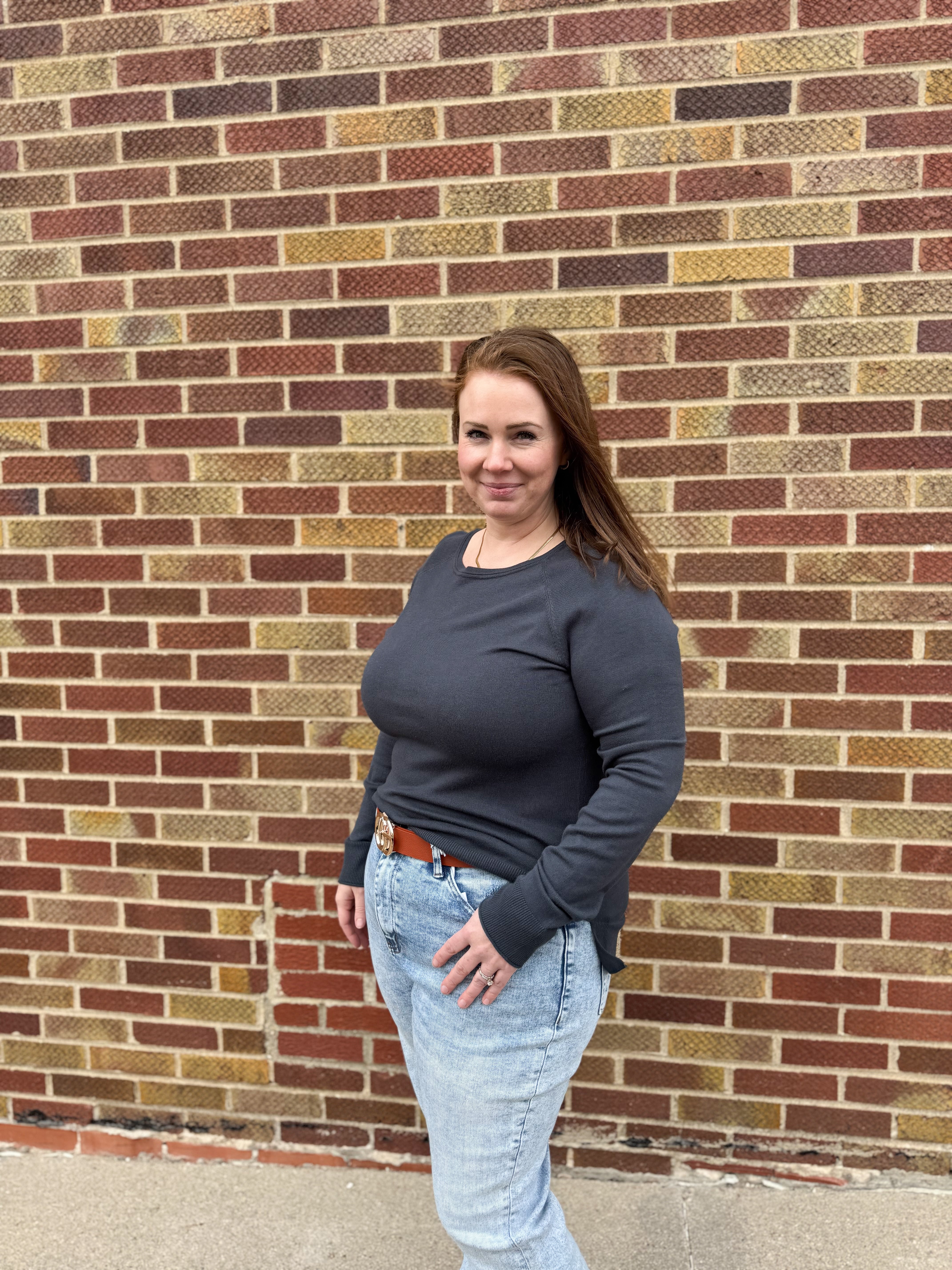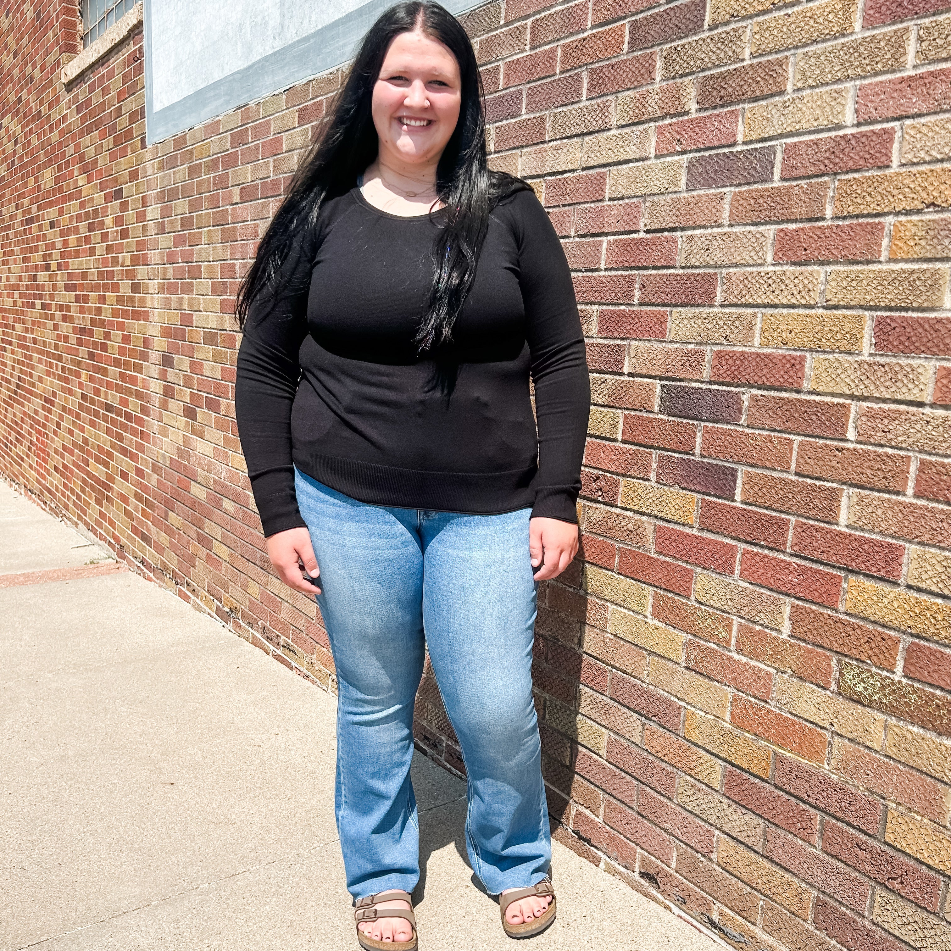 Upgrade your wardrobe with our Plus Round Neck Raglan Sweater. With long sleeves and stylish ribbed ends, this sweater is perfect for those chilly days. The side slits add a touch of uniqueness to this versatile piece. Stay cozy and chic with our high-quality sweater.