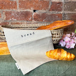 Expertly store and transport your fresh bread with our Printed Linen Bread Bag. Made of high-quality linen with a convenient tie closure, this bag features the word "bread" for easy identification. Keep your bread fresh and organized with our stylish and practical bag.