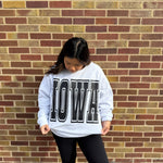 This reversible crewneck sweater is twice the fun! Featuring "IOWA" boldly printed on the front and "IA" hidden on the cozy inner fleece, it’s like getting two stylish sweaters in one. Switch up your look instantly and enjoy double the comfort without doubling the price. Perfect for those who love a playful twist on classic comfort.