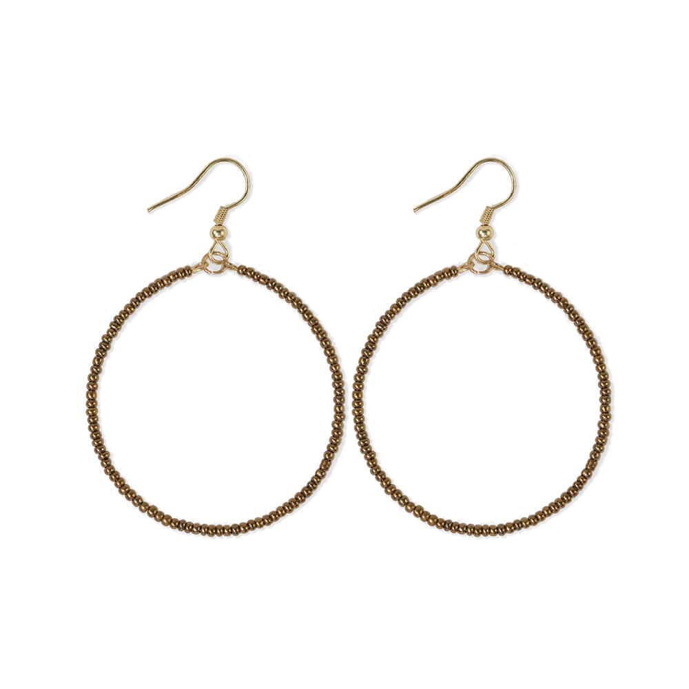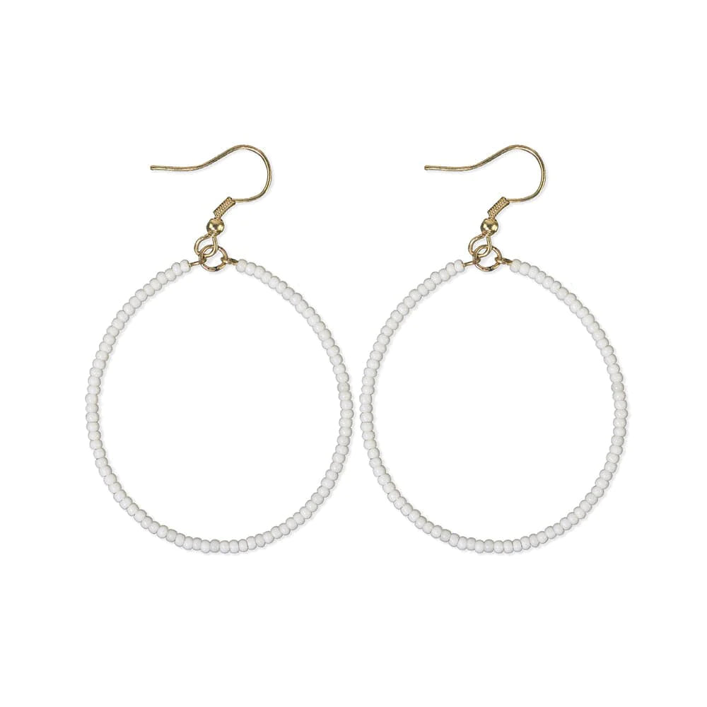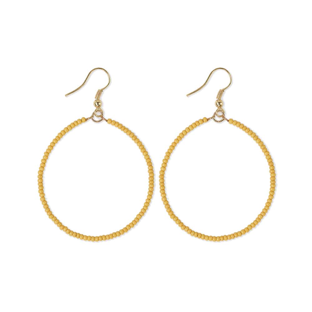 Lovers of color-blocked outfits and subtle accessories, these are for you! Lightweight, dainty, yet impactful, these front-facing hoops are what everyday earring dreams are made of. This slender silhouette of turquoise glass seed beads will become your new go-to accessory.