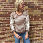 Add a splash of fun to your casual wardrobe with the Stripe French Terry V-Neck Sweatshirt. Its soft terry fabric feels like a warm hug, while the playful stripes and flattering V-neck bring a fresh, lively vibe to your everyday look. Perfect for relaxed days with a touch of style!