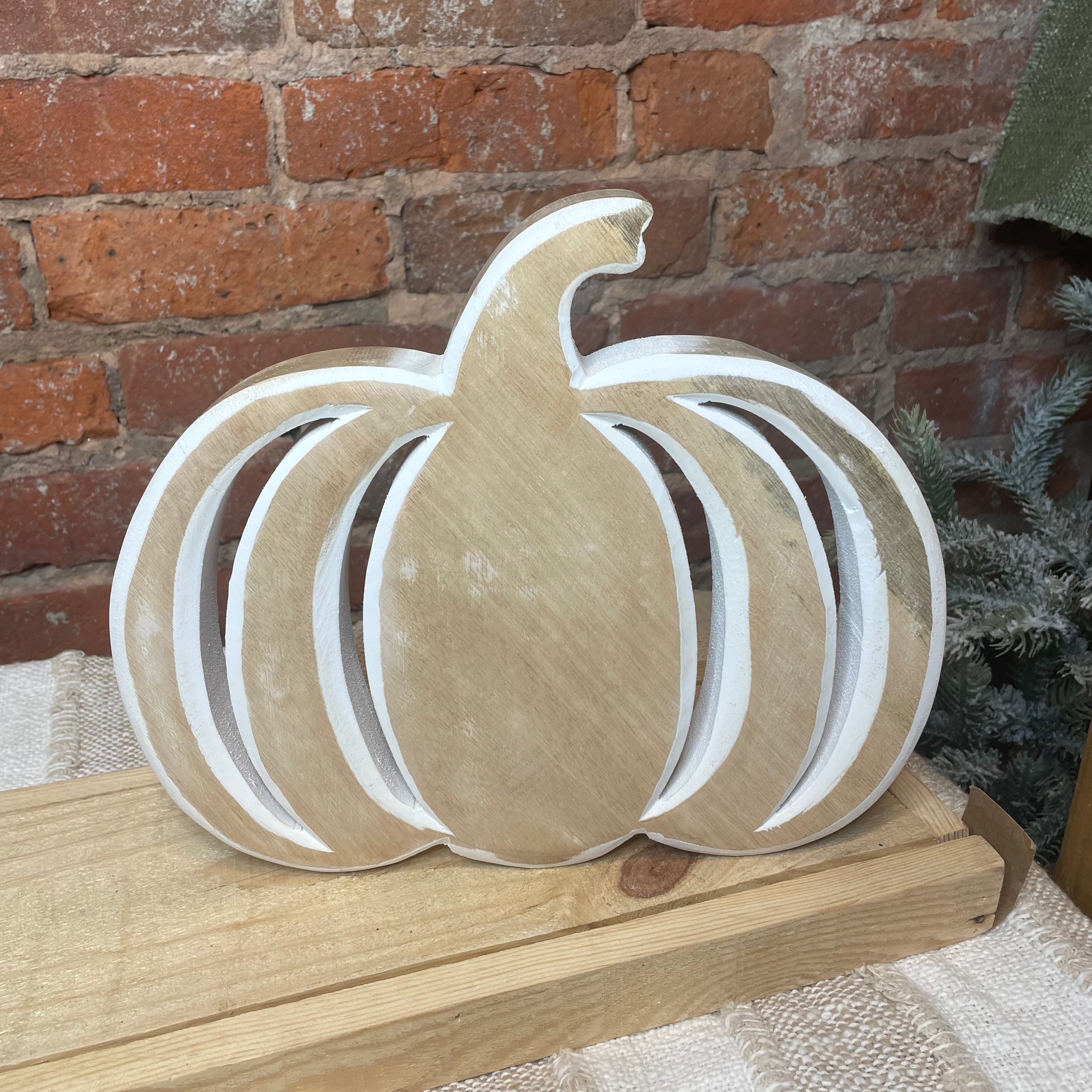 Crafted from high-quality wooden material, this whitewashed pumpkin is a must-have for your fall decor. Its sturdy construction and rustic charm will add warmth and elegance to any room. Bring the essence of the season into your home with this beautifully crafted piece.